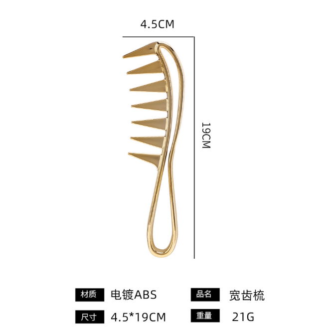 Electroplated Plastic Hairdressing Big Tooth Comb Plastic Coarse Tooth Perm Curly Hair Big Wave Oil Head Styling Large Wide Tooth Comb