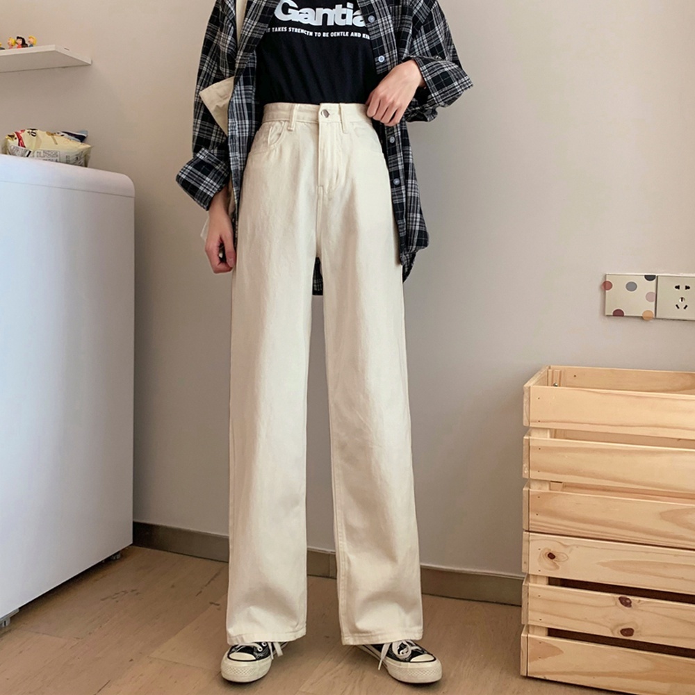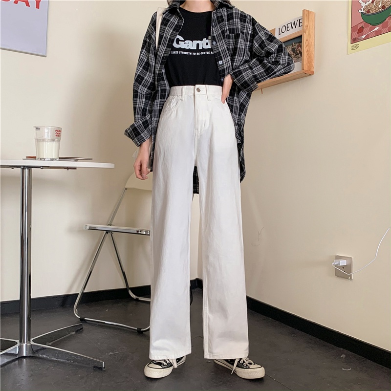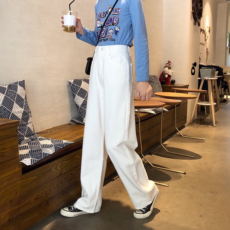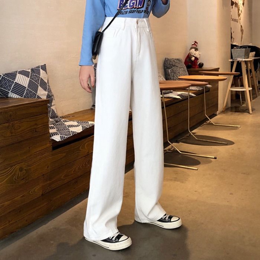 High Waist Jeans Korean Fashion Boyfriend Jeans Women's Denim Mopping Pants Casual Wide Leg Pants