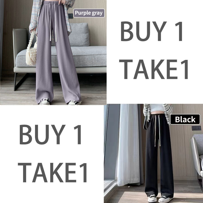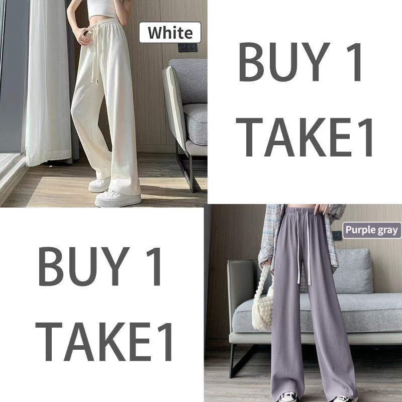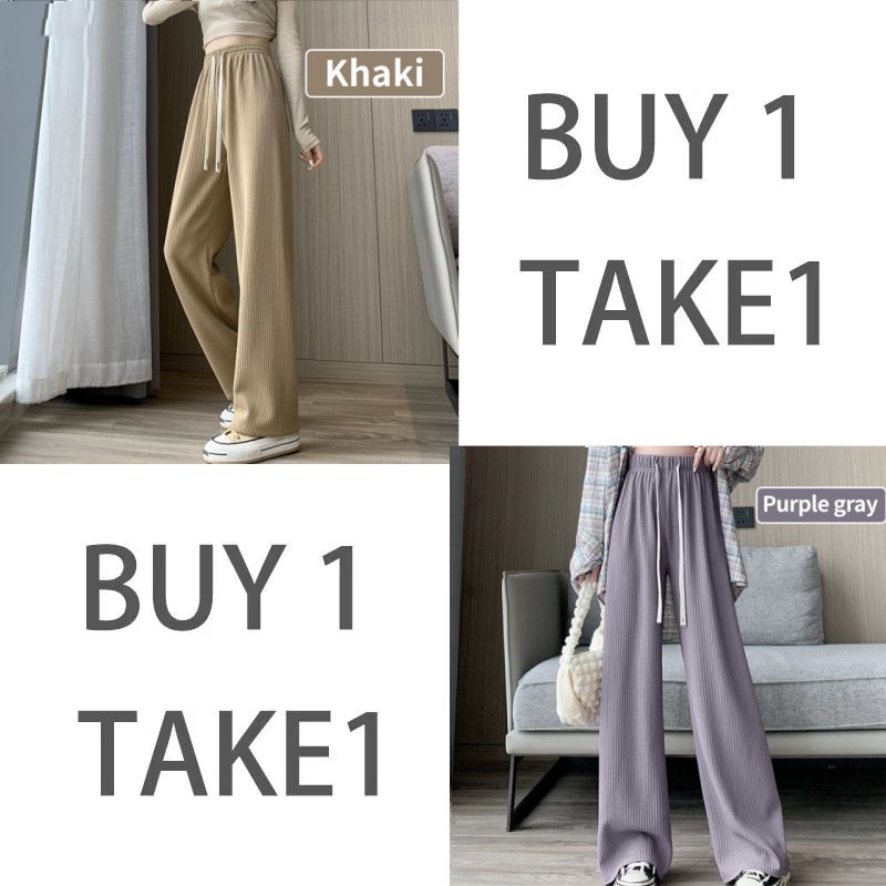 【BUY 1 TAKE 1】Pants For Women Baggy High Waist Pants Straight Plain Casual Pants Korean Drawstring