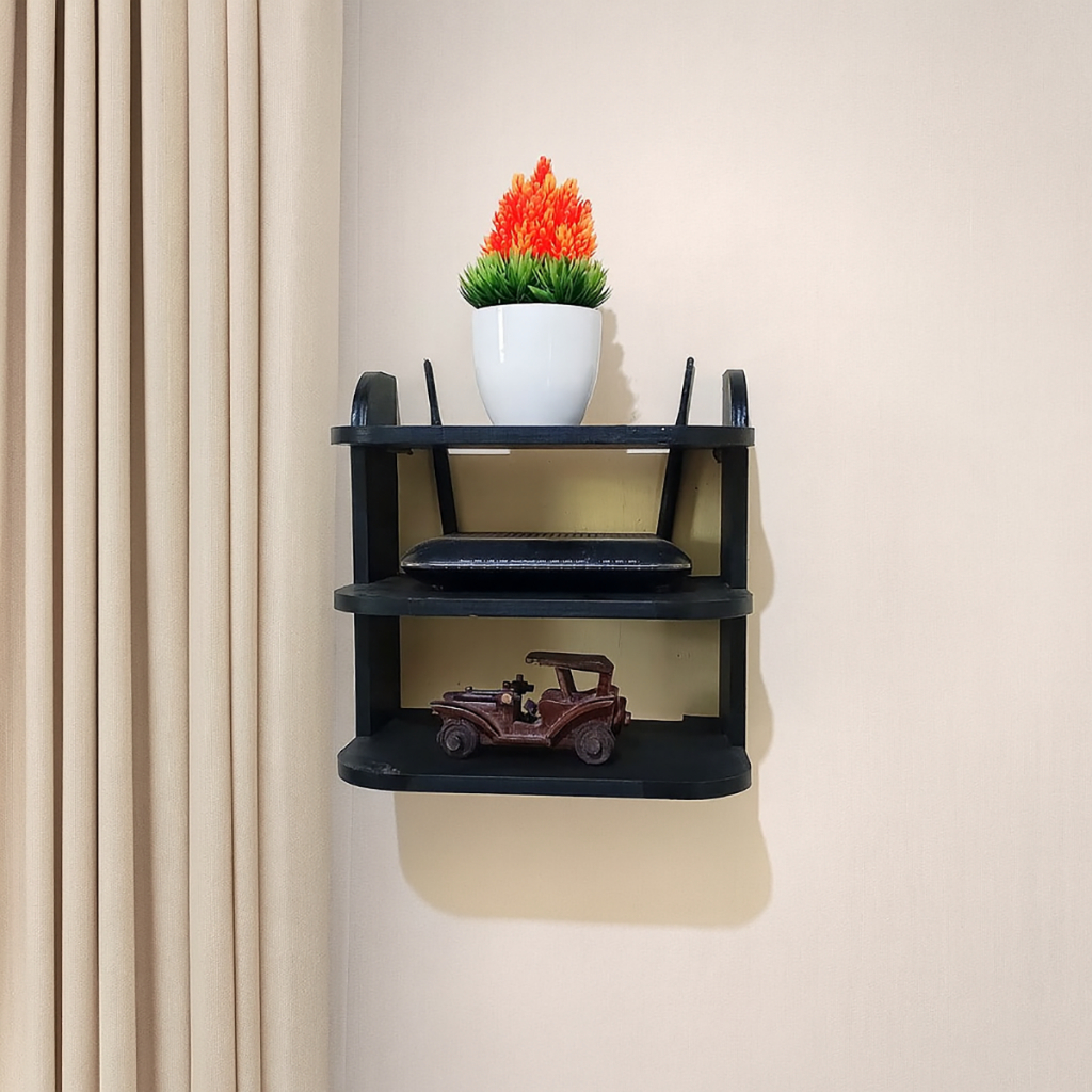Hanging WIFI Router Rack – DVD Wall Rack for/ Modem 2 & 3 Compartments | Minimalist Aesthetic | Living Room