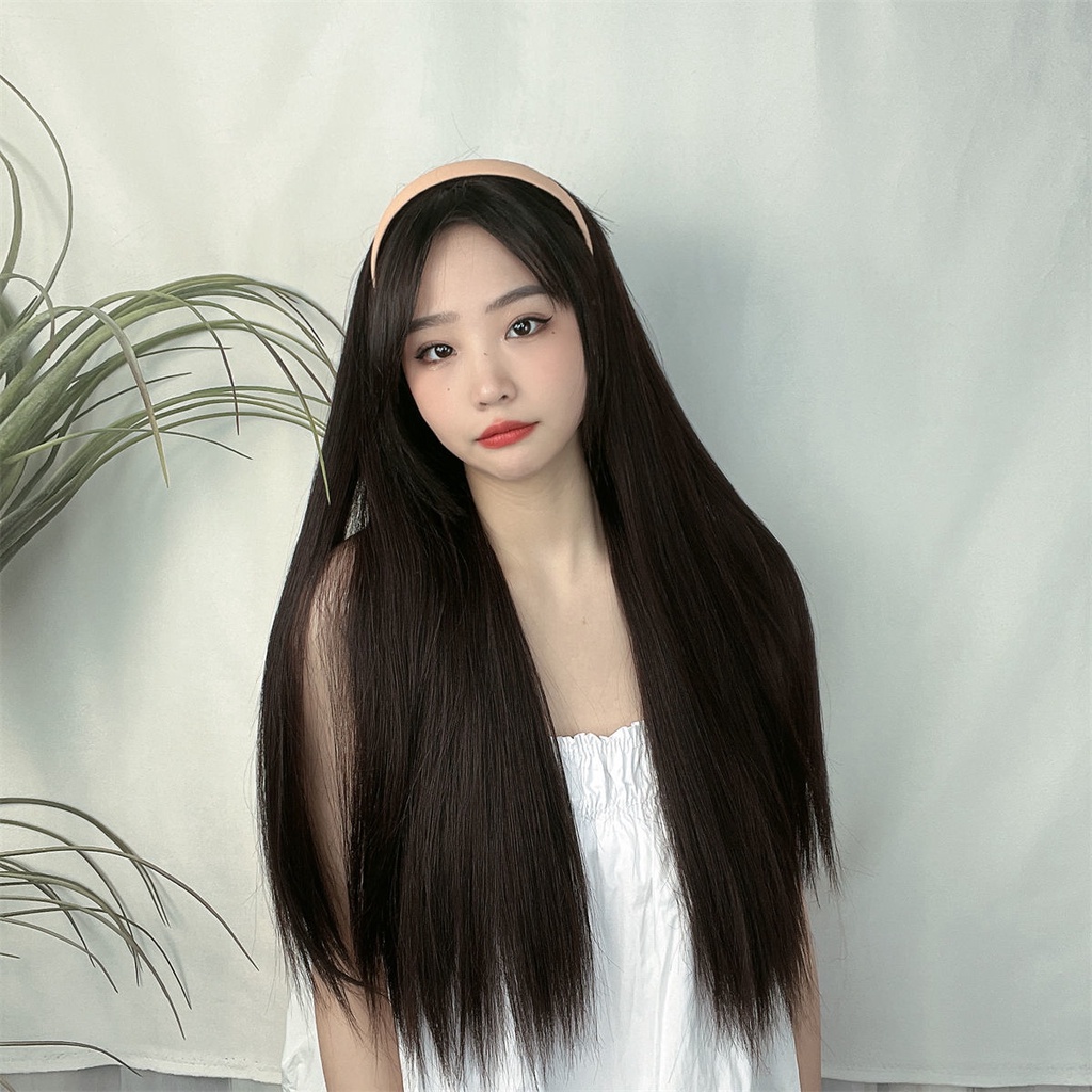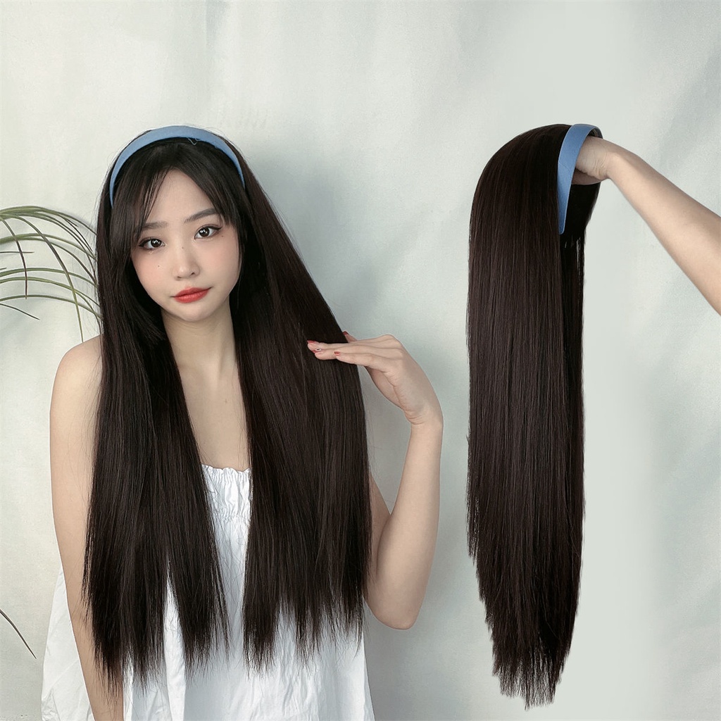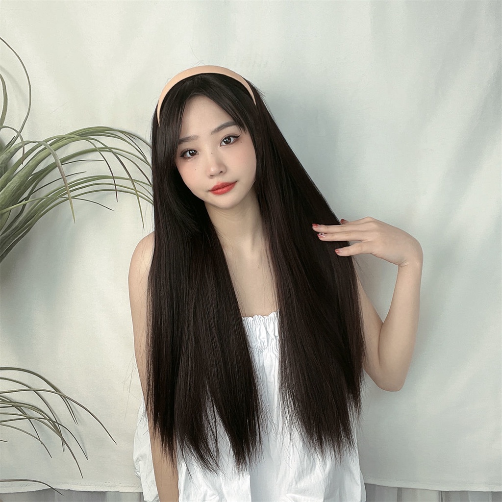 Wig Female Long Straight Hair Lazy Headband One Half Headgear Korean Style Temperament Simulation Full