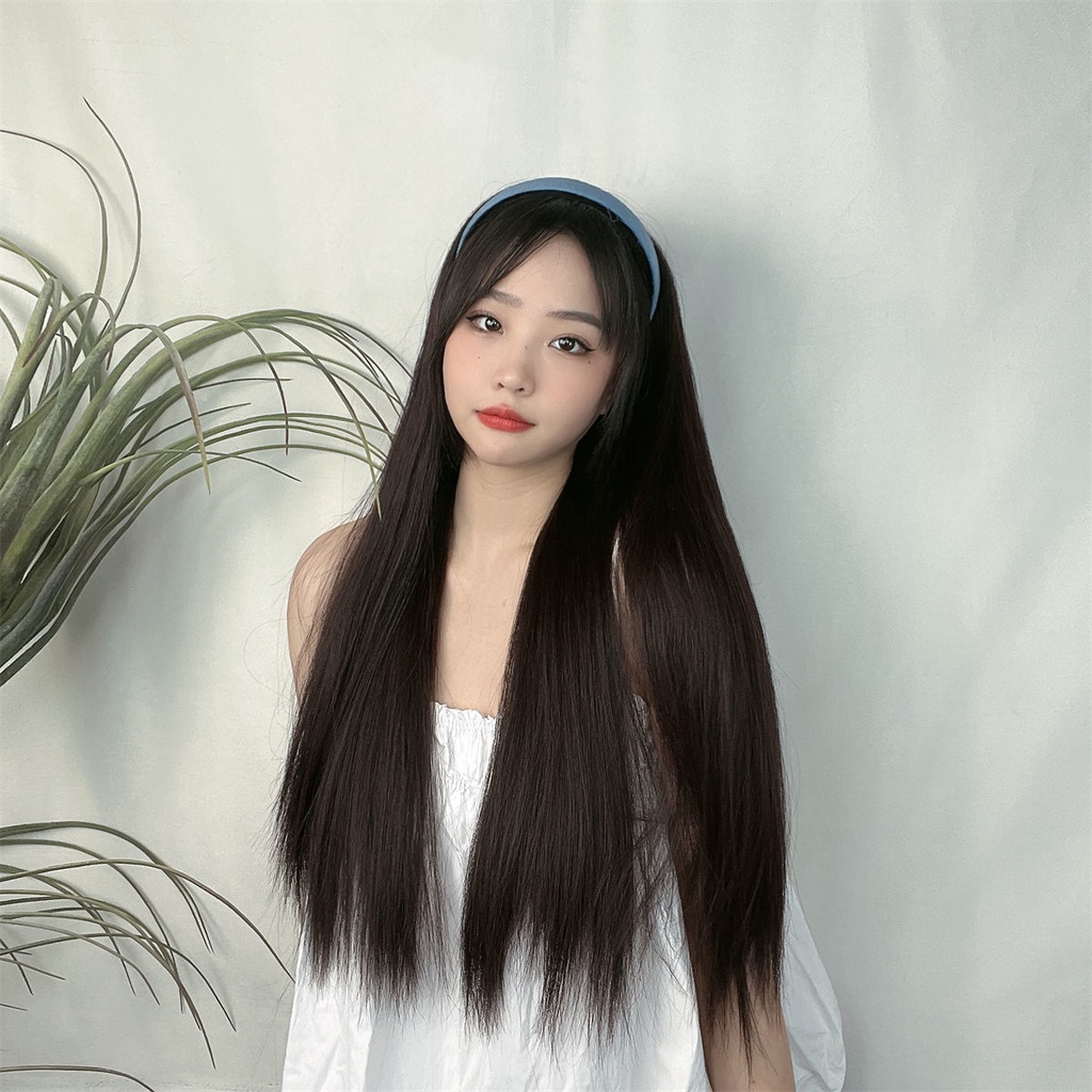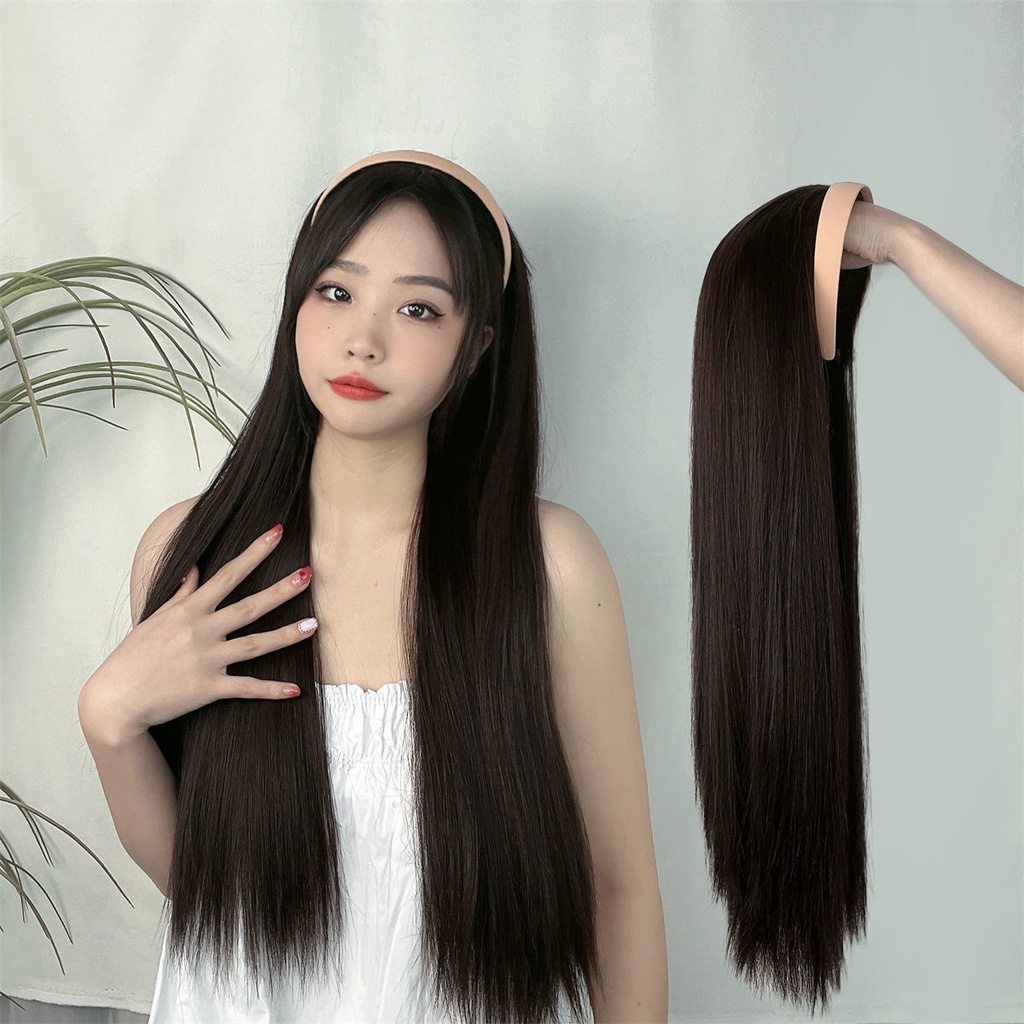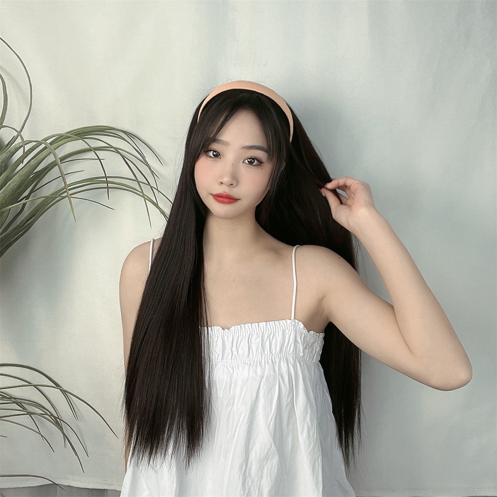 Wig Female Long Straight Hair Lazy Headband One Half Headgear Korean Style Temperament Simulation Full