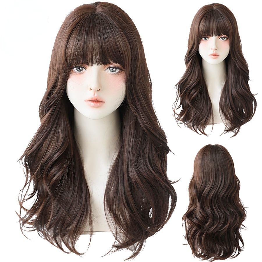 Wig for woman Hair extensions wig long hair comic bangs net red round face big wave fluffy full headgear long curly hair