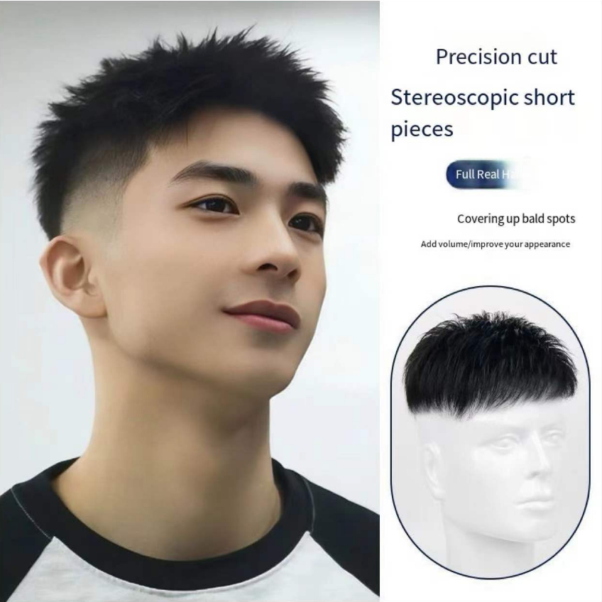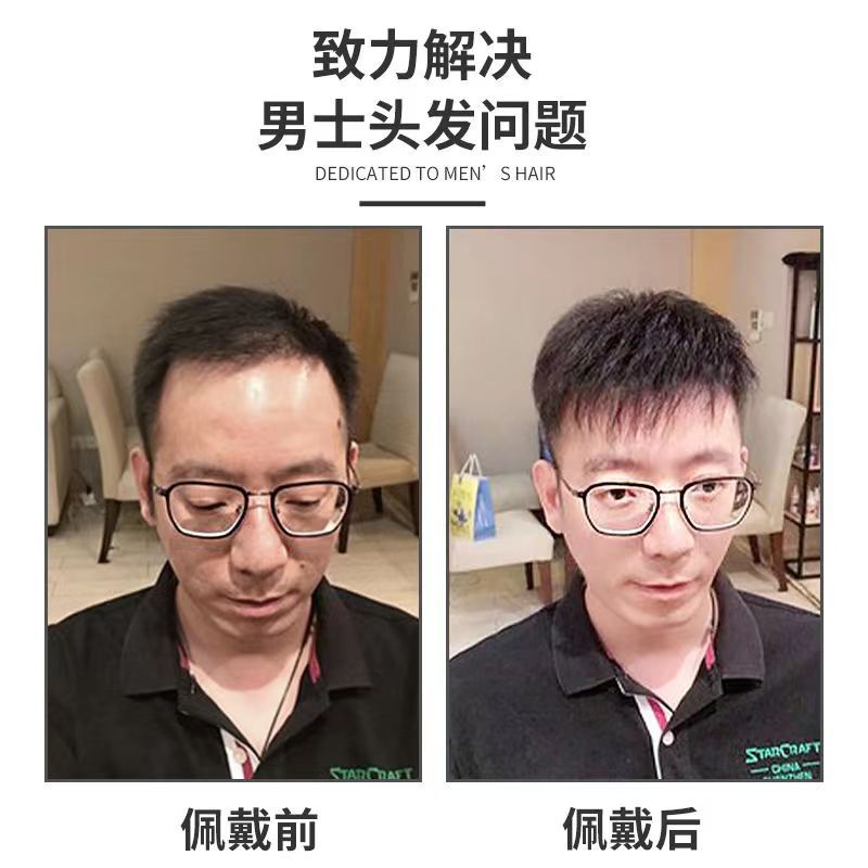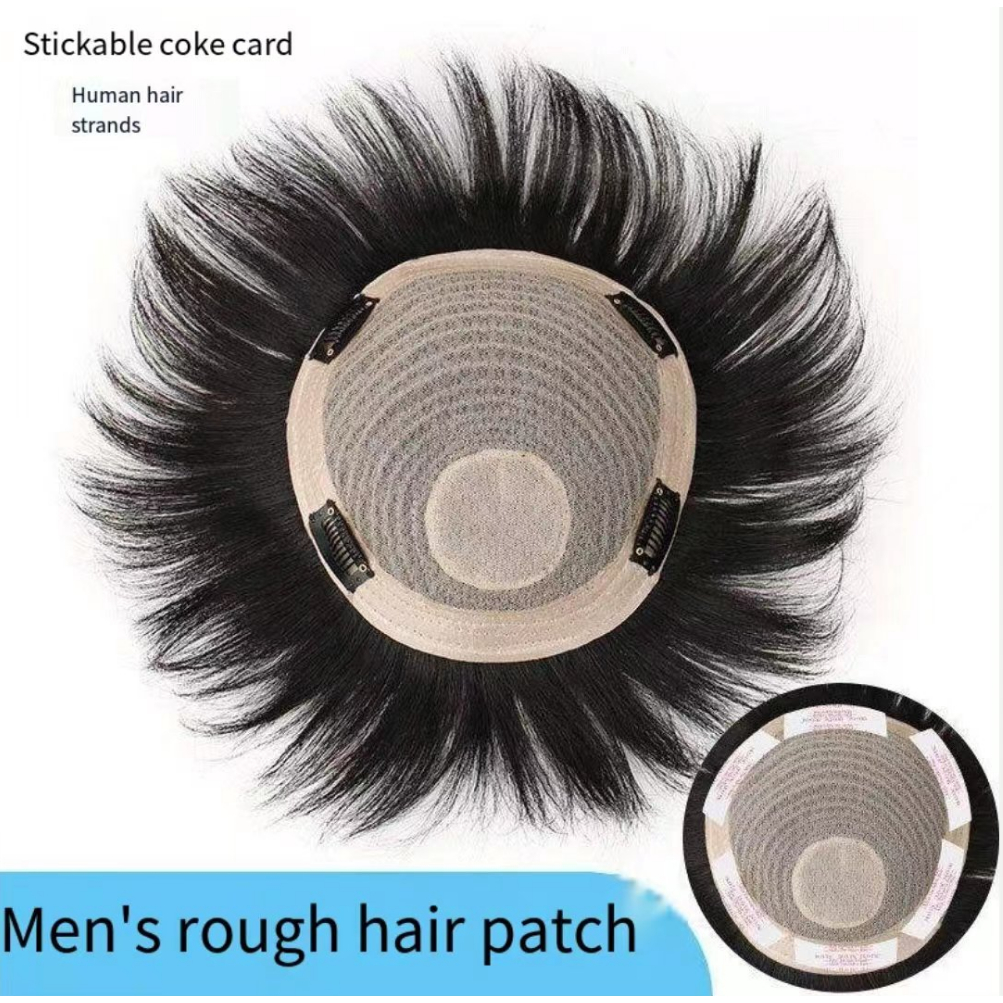 Wig men short hair hair inch full true hair invisible wig piece men can stick Coke thin hair patch