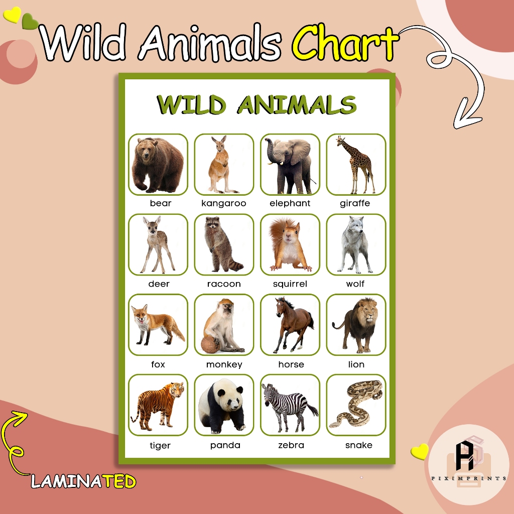 Wild Animals Chart Learning Materials for Kids (Laminated) | PiXimprints