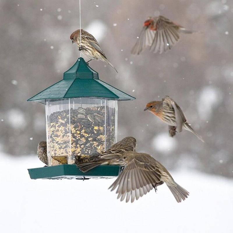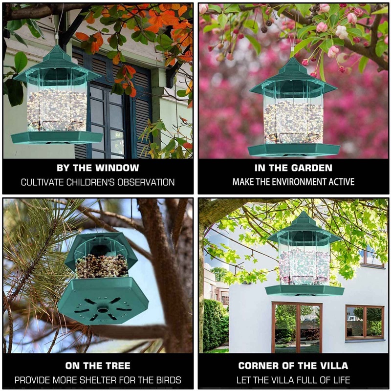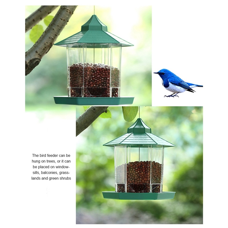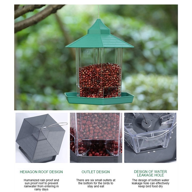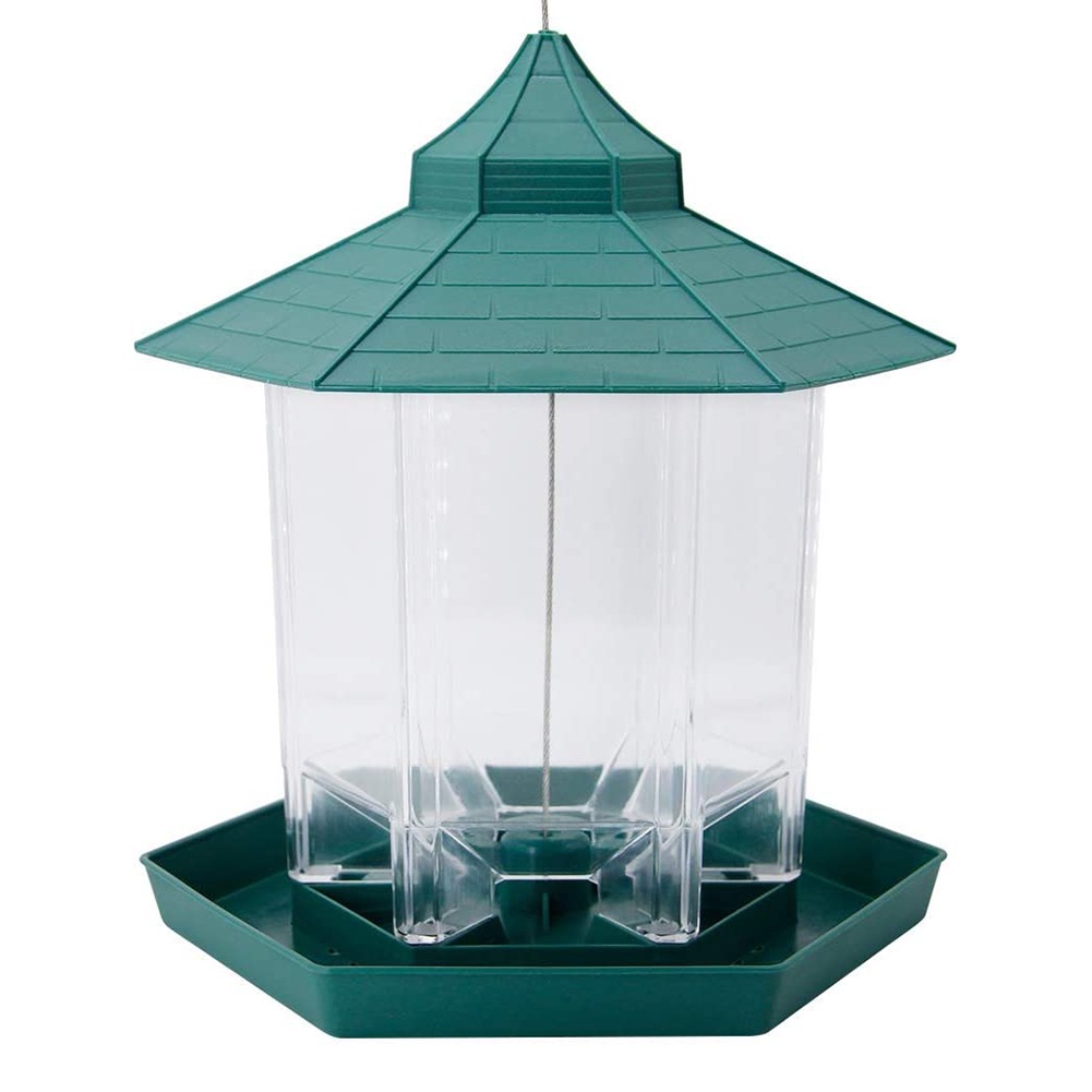 Wild Bird Feeder Hexagon Shaped with Roof Hanging Gazebo Bird Feeder for Garden Yard Decoration