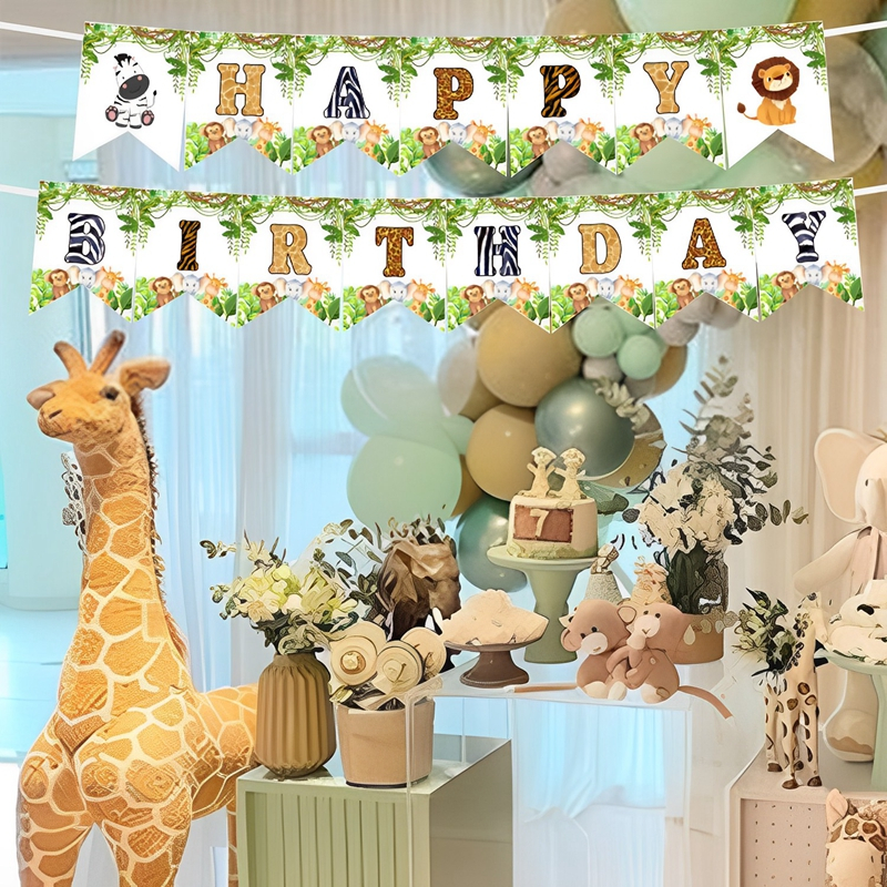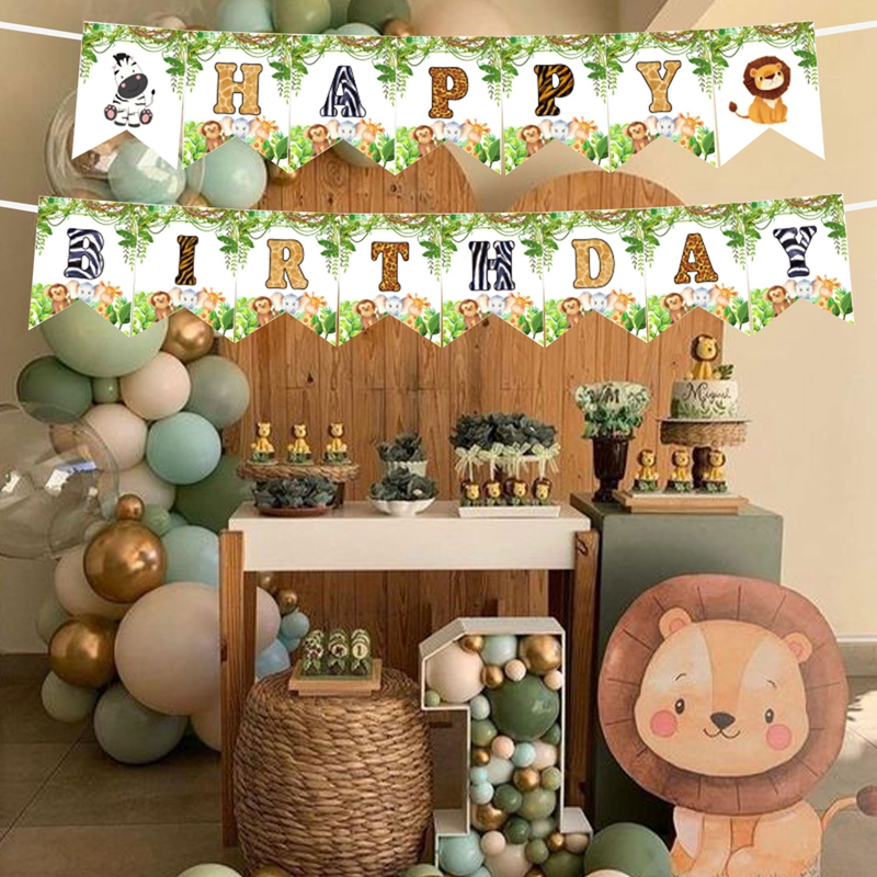 Wild One Birthday Banner Jungle Safari Paper Backdrop Party Decorations Birthday Background Decor Jungle Happy Birthday Party Supplies Home Decor