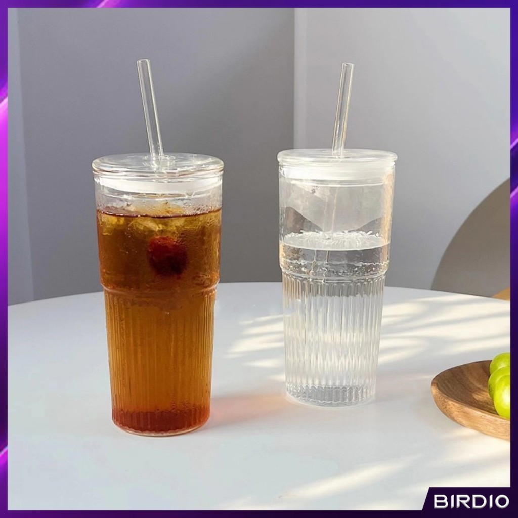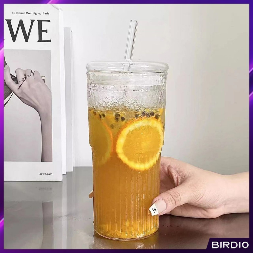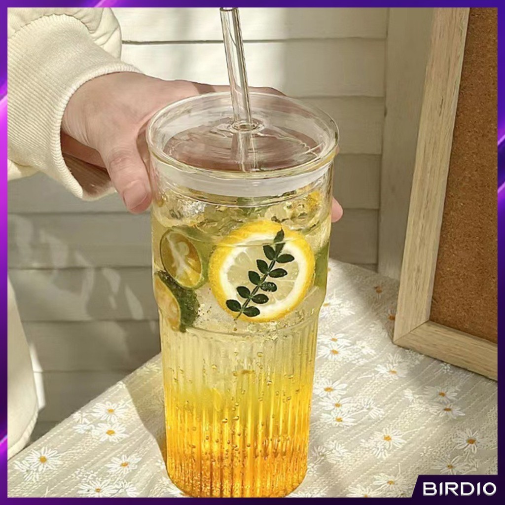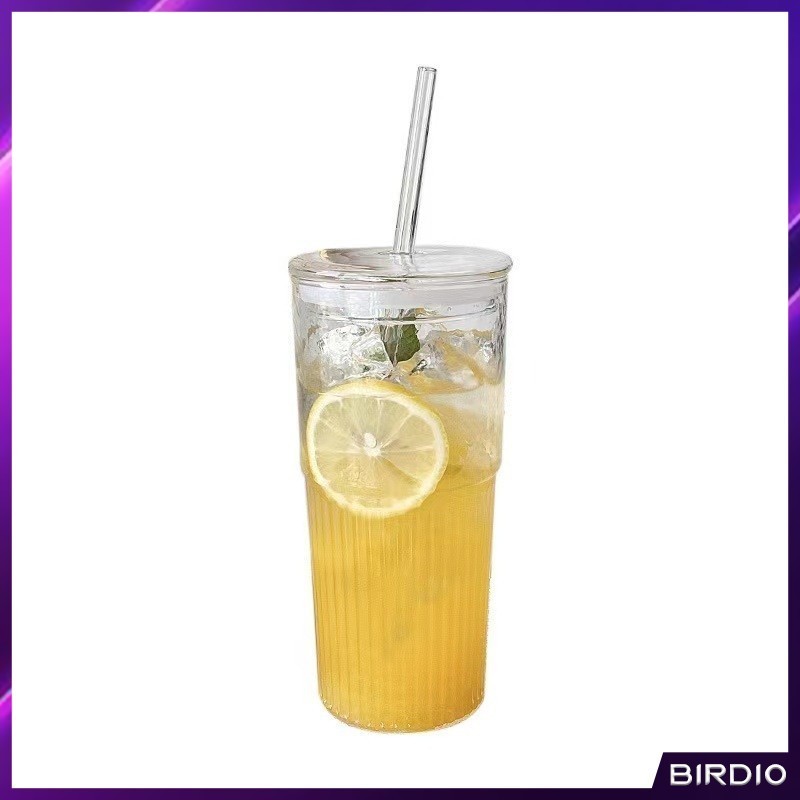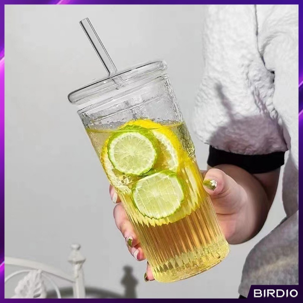 BDio 550ml Creative Glass Water Cup with Straw and Lid Juice Milk Tea Coffee Cold Drink Mug