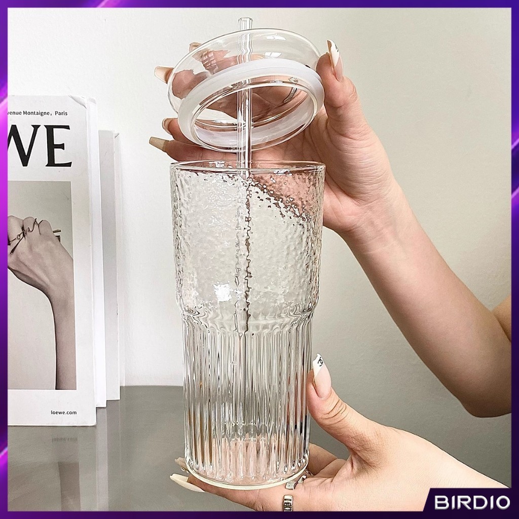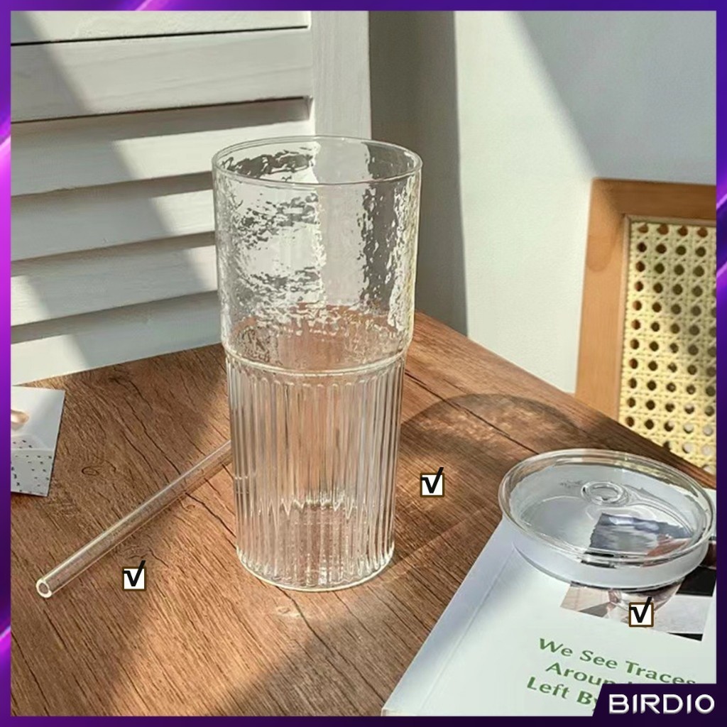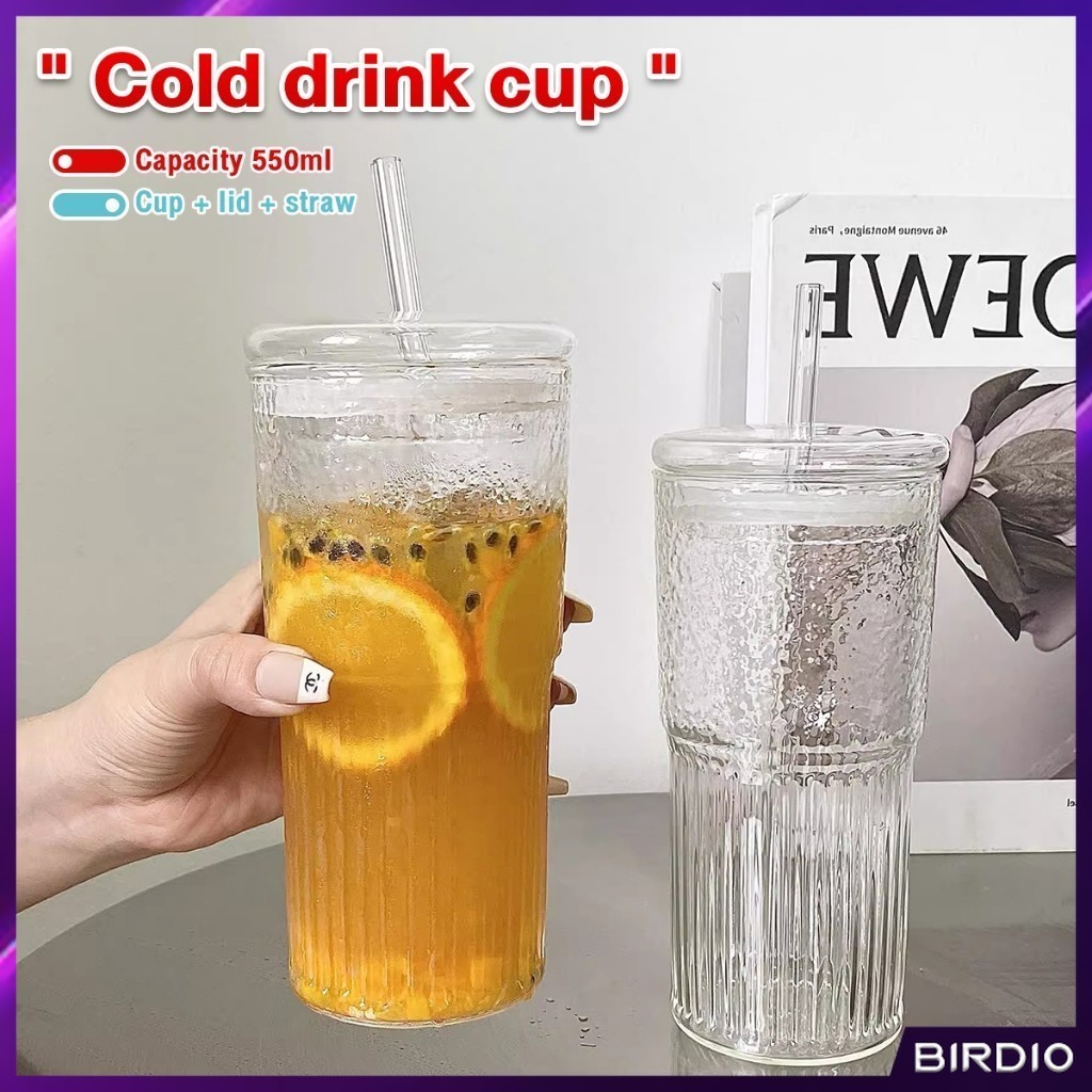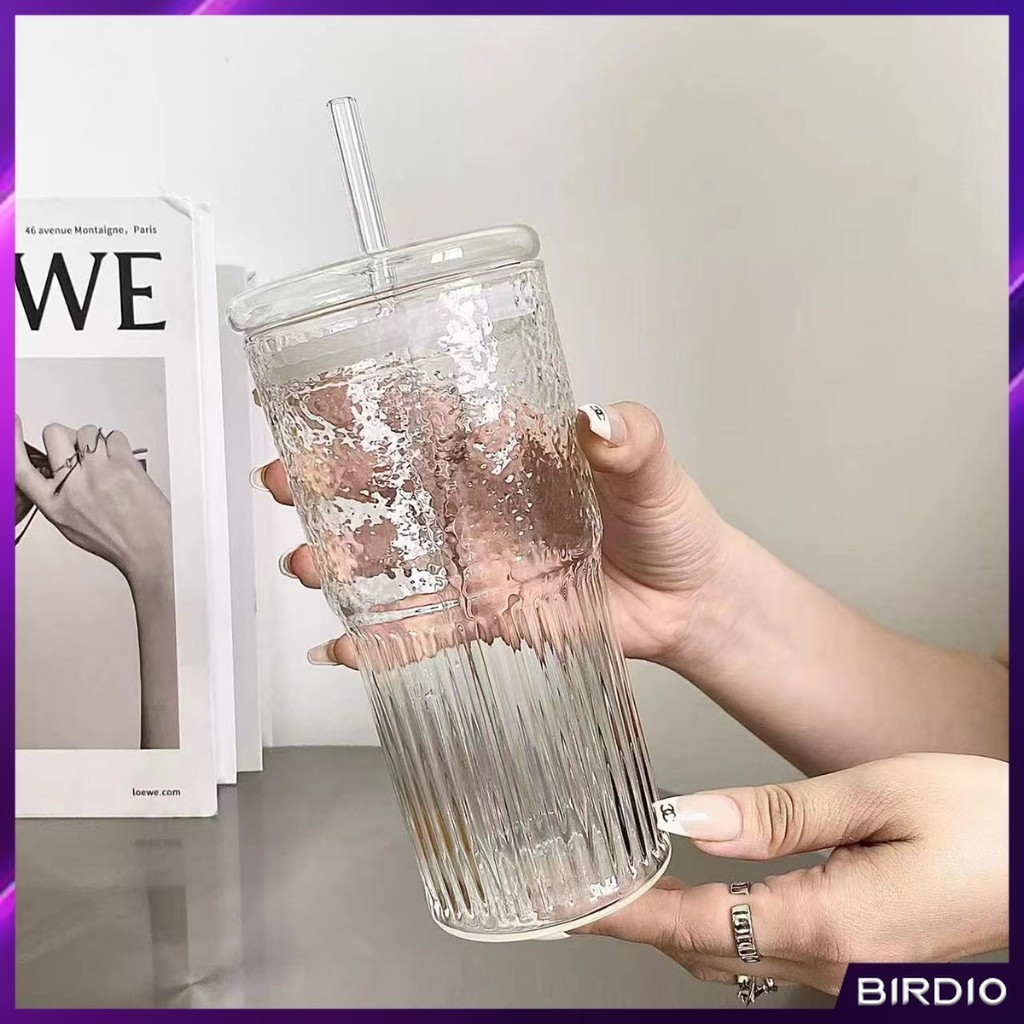 BDio 550ml Creative Glass Water Cup with Straw and Lid Juice Milk Tea Coffee Cold Drink Mug