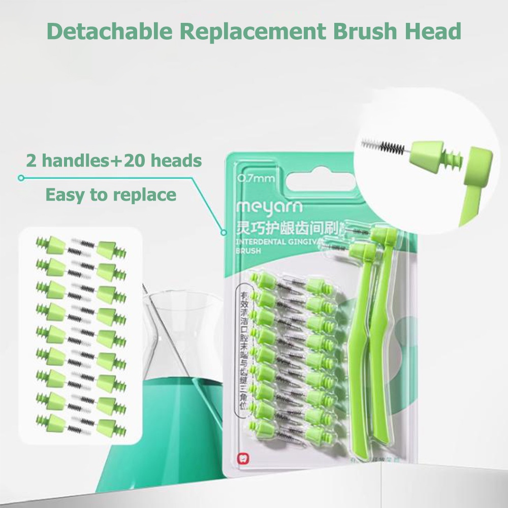 MEYARN 2Pcs Interdental Brush + 20Pcs Detachable Replacement Brush Head with Soft Bristle for Braces