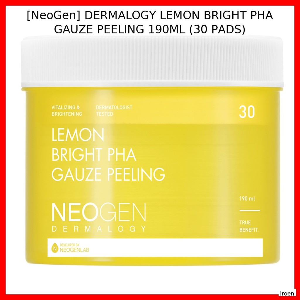 [NeoGen] DERMALOGY LEMON BRIGHT PHA GAUZE PEELING 190ML (30 PADS) / Korean Peeling Pads / Brightening Effect / 100% Genu