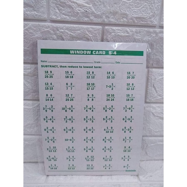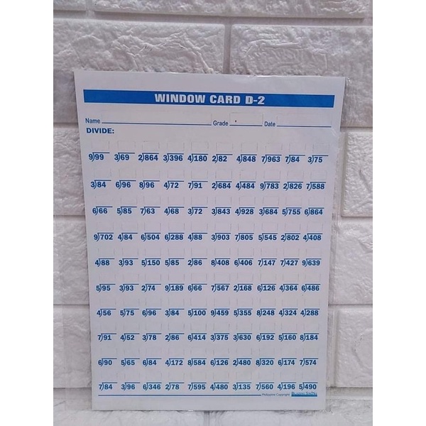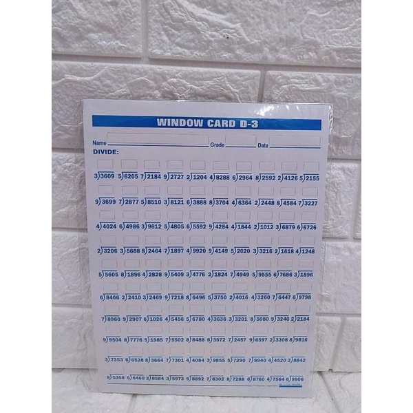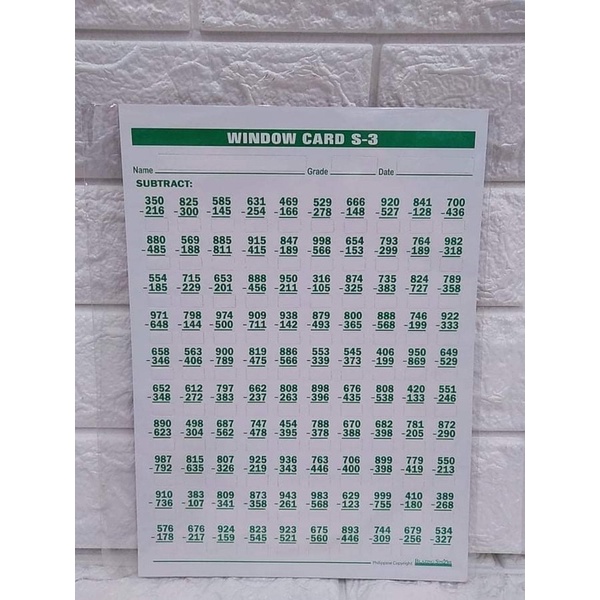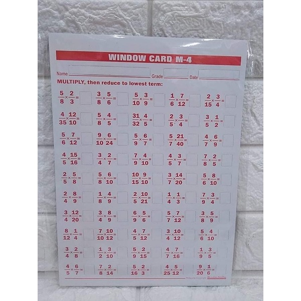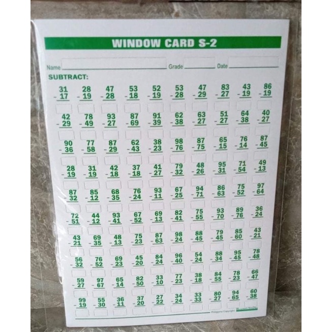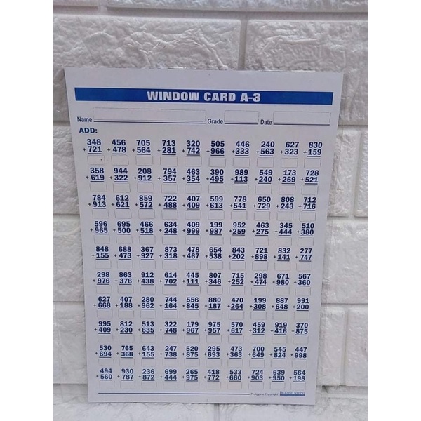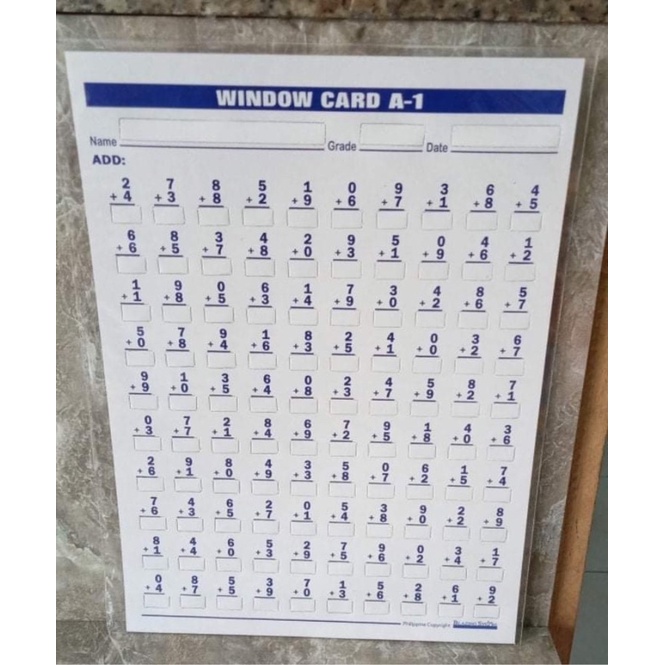 Window Card Addition Subtraction Multiplication & Division 5 Cards