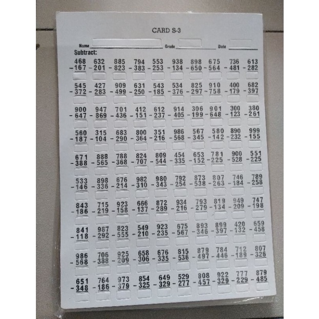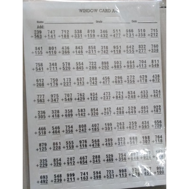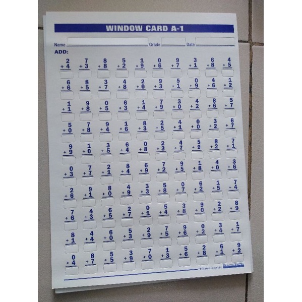 Window Card per Piece(S1,A1,D1,M1)(S2,A2,D2,M2)(S3,A3,D3,M3)(S4,A4,D4,M4)