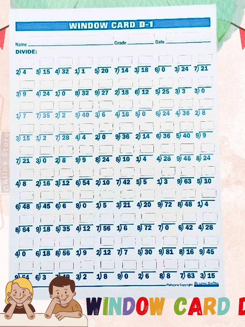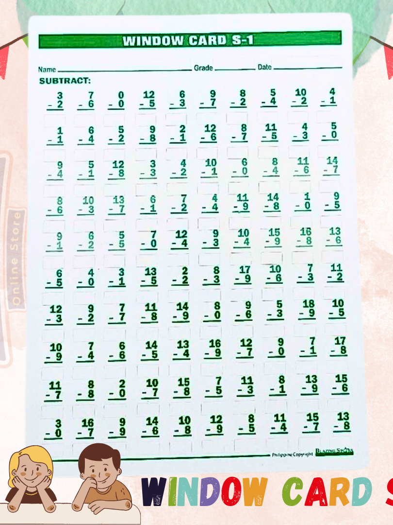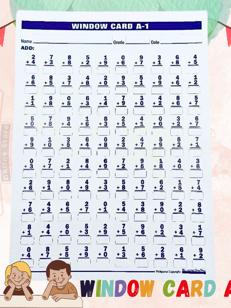 Window Cards Level 1 Addition, Subtraction, Multiplication, Division Sold per Set or per Piece