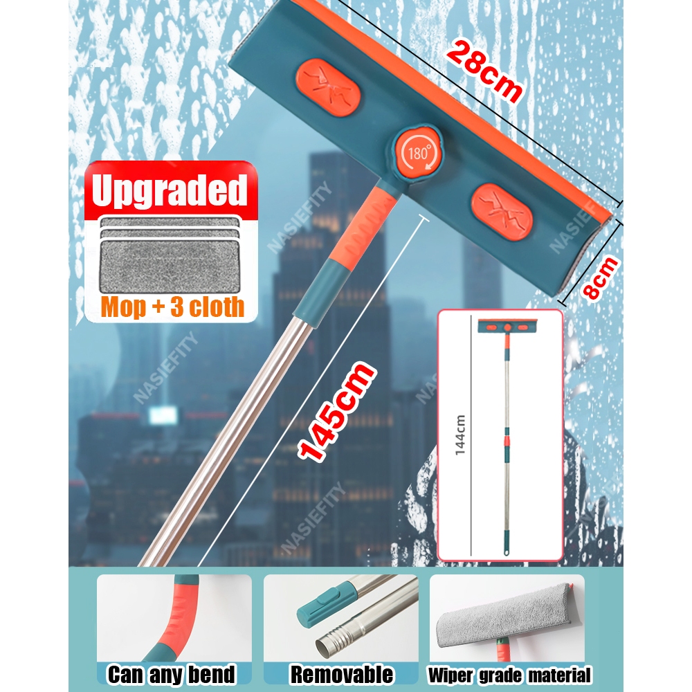 Window Cleaner with Wiper Strip High-rise Window Wiper Mop Floor Cleaning Retractable Cleaning Tool