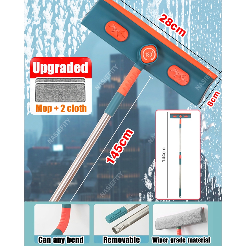 ✅Extension Panel✅Window Mop Extendable Retractable Pole For Glass Windows Mirrors Shower Rooms Tile Walls Window Cleaner Glass Wiper Mop