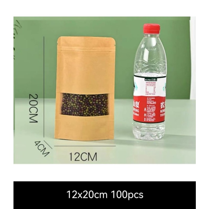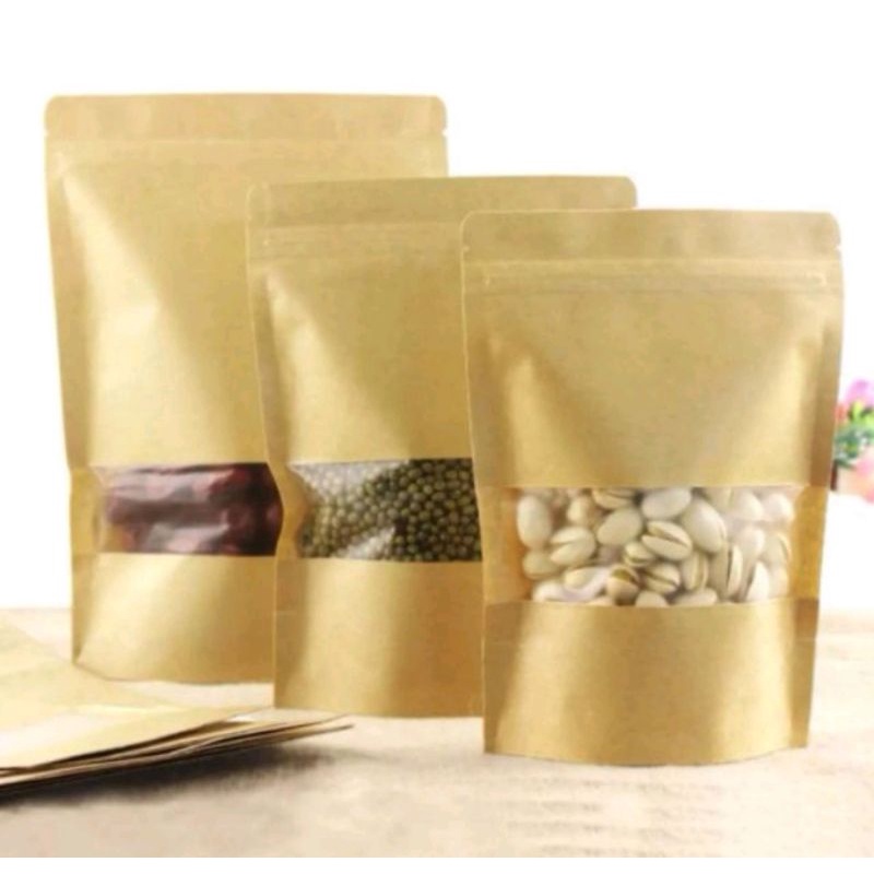 Window Zip Lock Kraft Paper Bags Dried Food Nuts Cookie Self Sealing Zipper Wrapper Food Package Bag