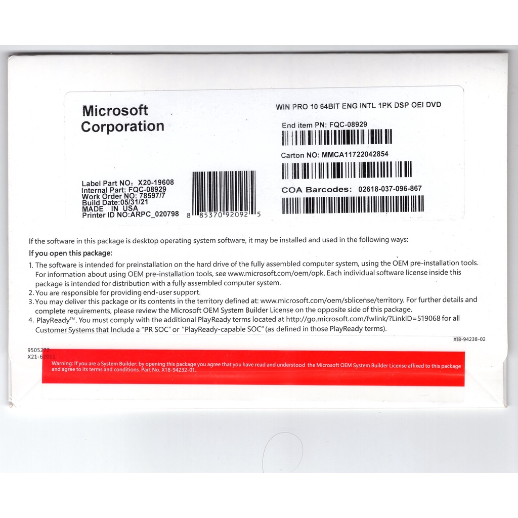 Windows 10 Pro 64 Bit DVD with Antivirus