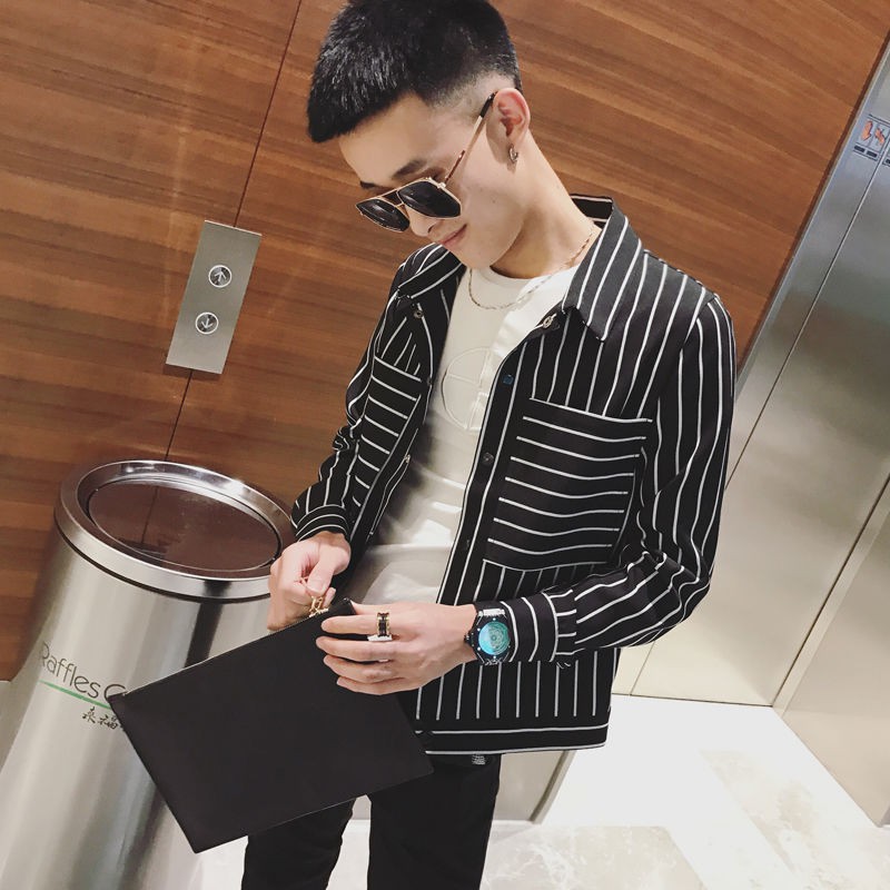 Windproof jacket Men's short woolen material design Korean handsome British style woolen jacket