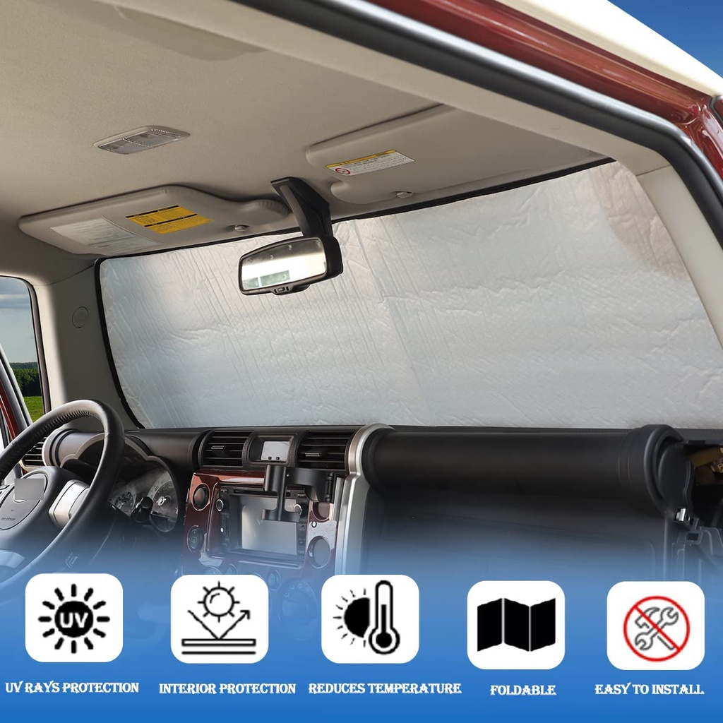 Windshield Sunshade Fit For Toyota FJ Cruiser 2007-2021, Folding Car Sun Shade For Front Window, Auto Sun Protection Visors Blocks UV Rays And Keeps Vehicle Cool