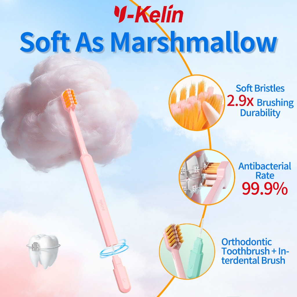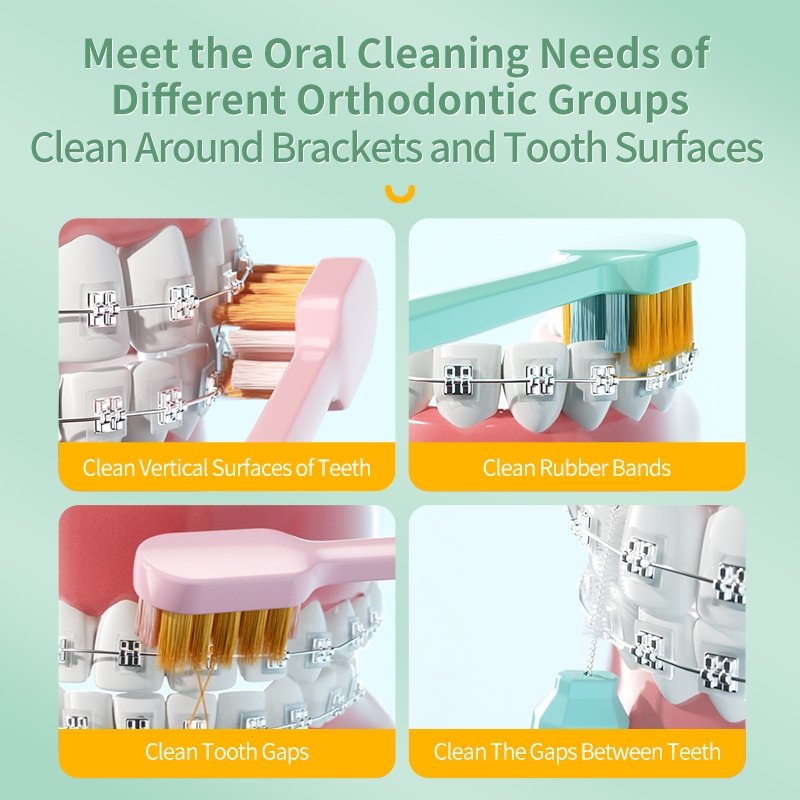Y-Kelin Orthodontic Toothbrush Brace Interdental Brush 2-In-1 Soft Toothbrush For Adult