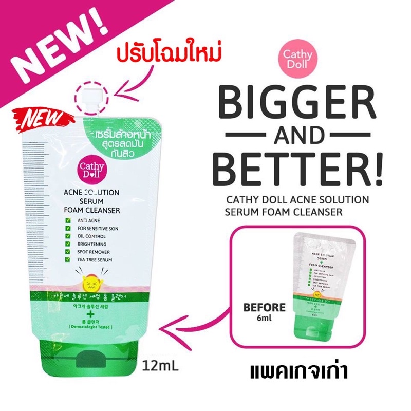 (1 Pack) Facial Cleansing Serum Acne-Reducing Formula 12 g. Cathy Doll Acne Solution Foam Cleanser