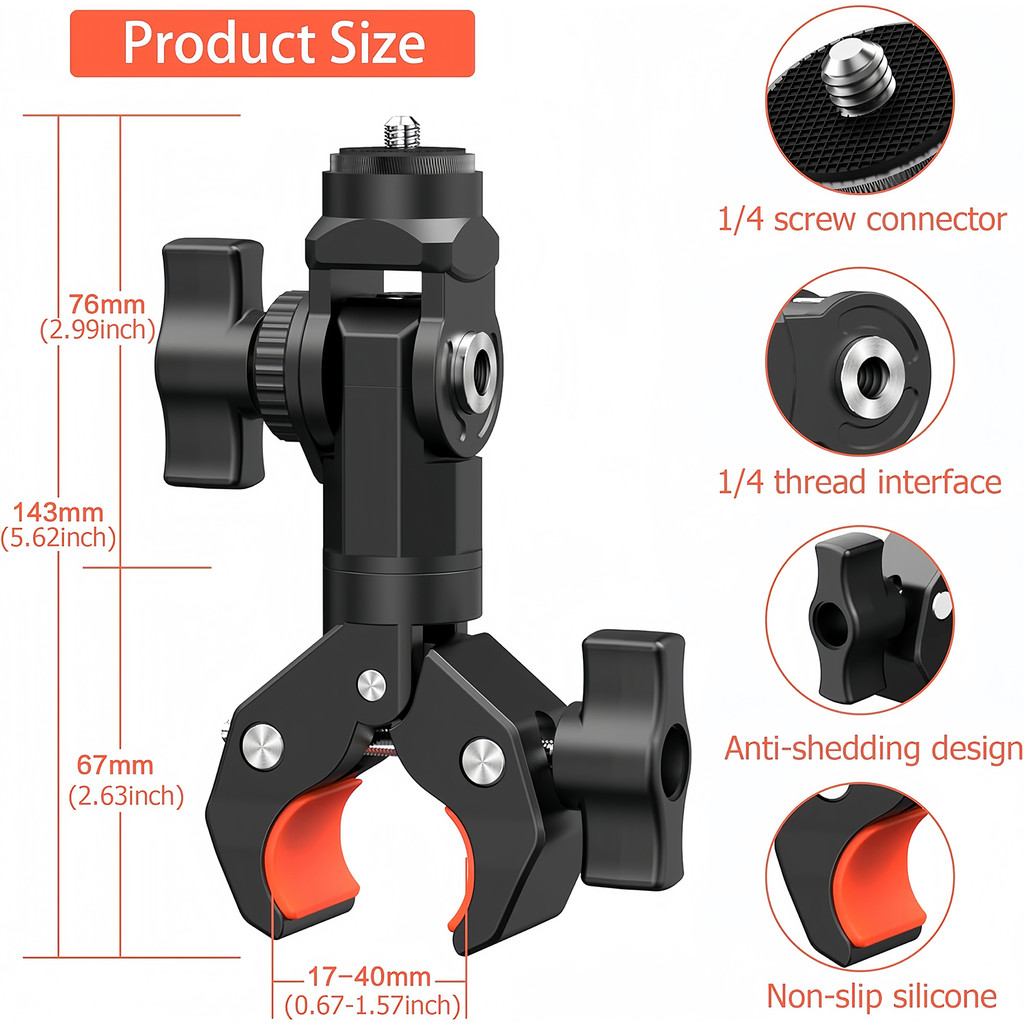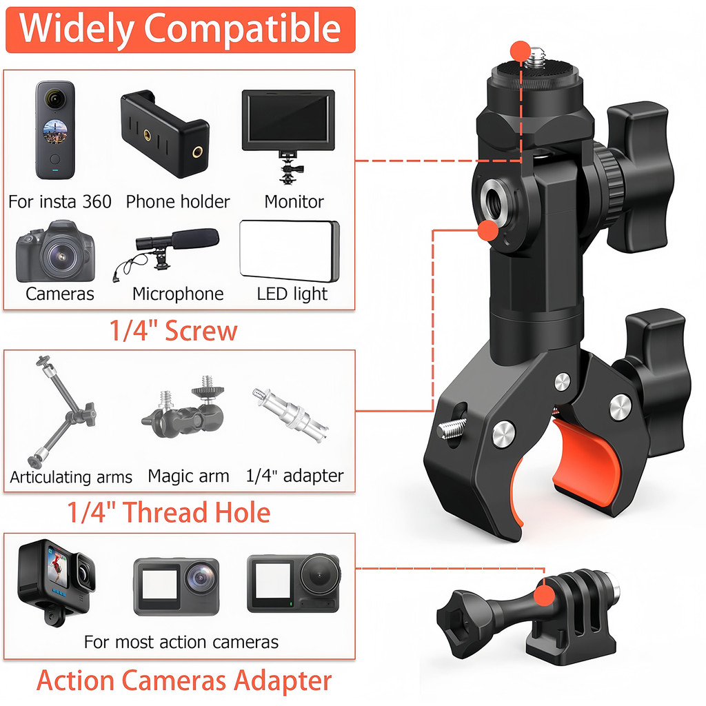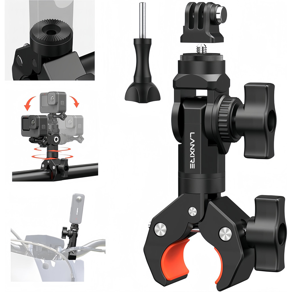 Lanxire Bike Motorcycle Handlebar Camera Clamp Mount for Gopro/ Insta360/AKASO/Mevo Start/DJI A 9K8