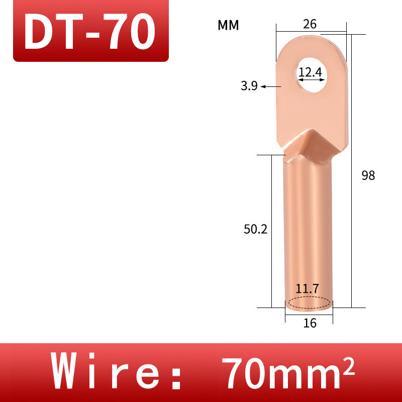 Wire Crimp Connector Car Auto Copper Terminal Block DT-10/16/25/35/50 Battery Cable Crimp Terminals Soldered Copper Crimp Lugs