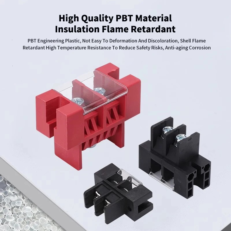 High Current PBT Terminal Block Transparent Cover Flame Retardant for Easy Inspection Angle Display