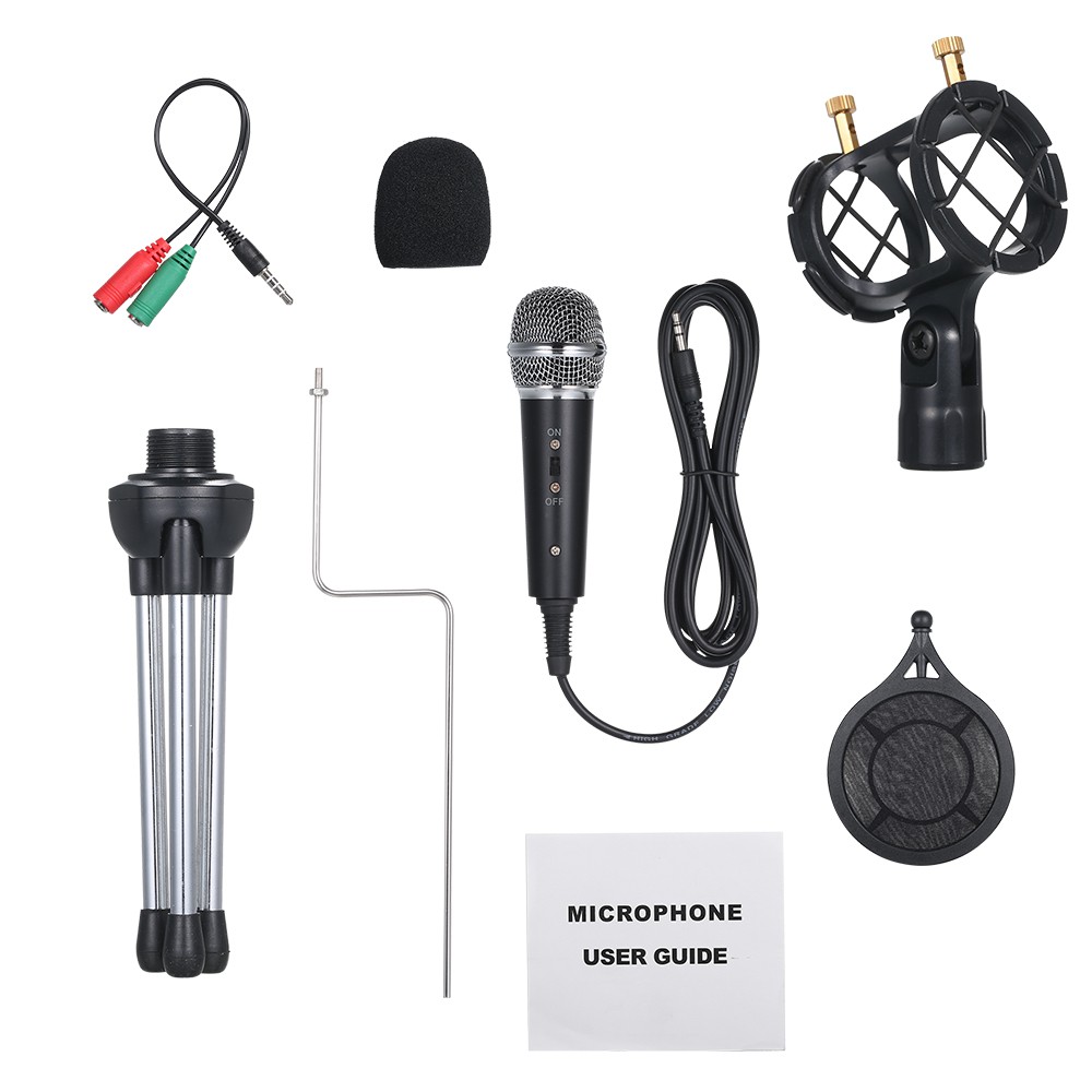 Wired Condenser Microphone Audio 3.5mm Studio Mic Vocal Recording KTV Karaoke Mic with Stand for PC Phone