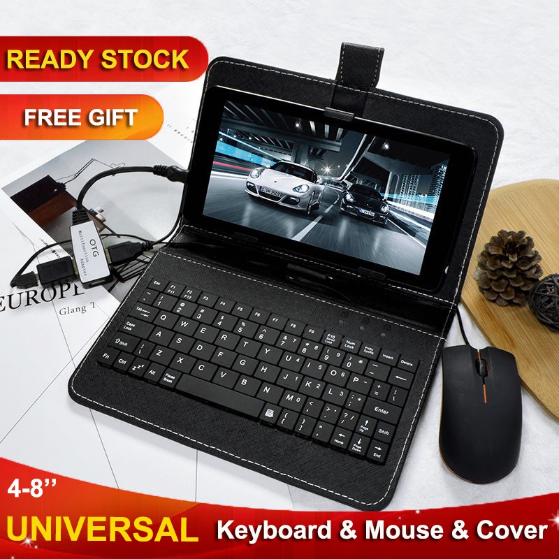 Wired Keyboard and Mouse kit for Phone Tablet Compatible 4-8 inch Android OTG System with PU Cover Universal