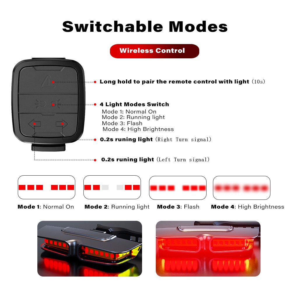 Wireless Bike Light Turn Signal Indicator Front Rear Light Remote Flash Back Headlight for Bicycle USB Rechargeable Taillight