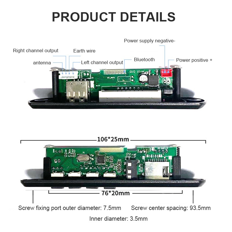 Wireless Bluetooth 5.0 Decoder Board DC 9V 12V MP3 Audio Module USB TF Radio with Audio Amplifier