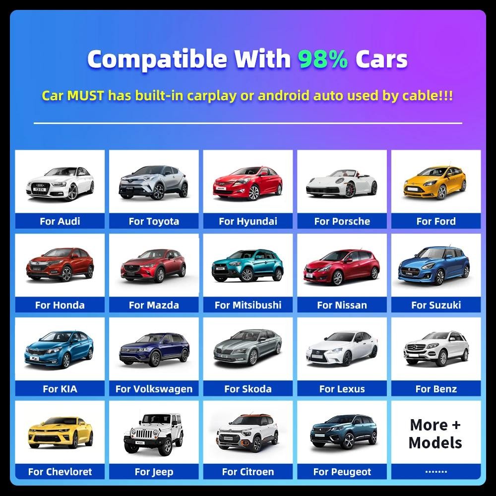 Wireless Carplay Android Auto Adapter 2 in 1 Mini Box Plug&Play CarPlay AI Box BT WiFi for Wired CarPlay/Andriod Auto Cars