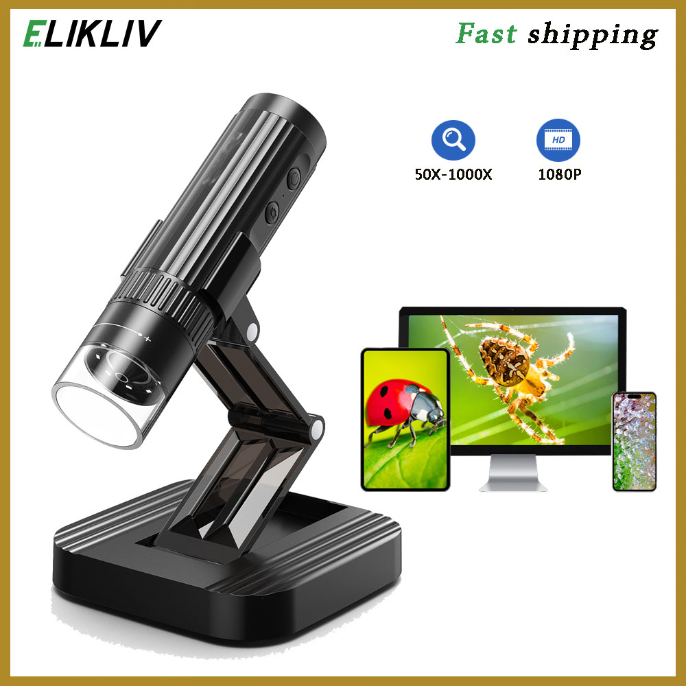 Wireless Digital Microscope [Easy and Fun] 50X-1000X 1080P HD WiFi Portable Handheld USB Trichome Mini Coin Microscope Camera Magnifier with Stand for iPhone iPad Android Phone & P