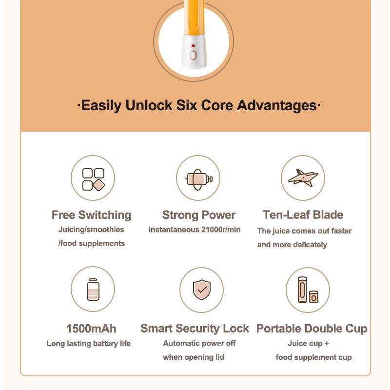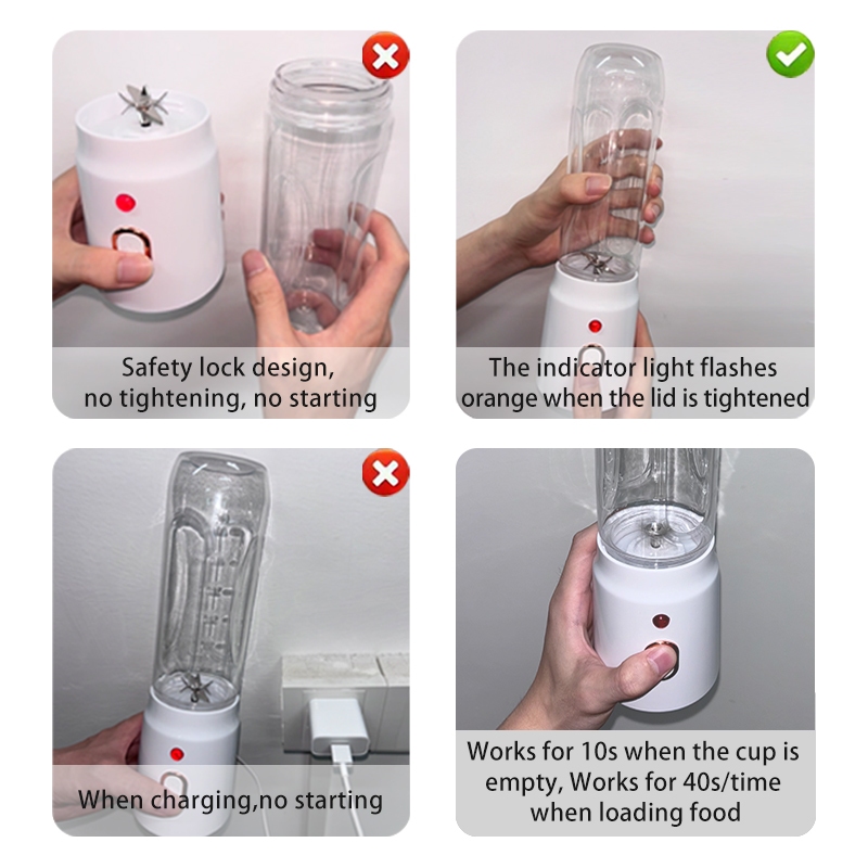 Portable Juicer 450ML 2 Cups Blender Tumbler Household Travel Mini Electric Juicer Smoothie Blender