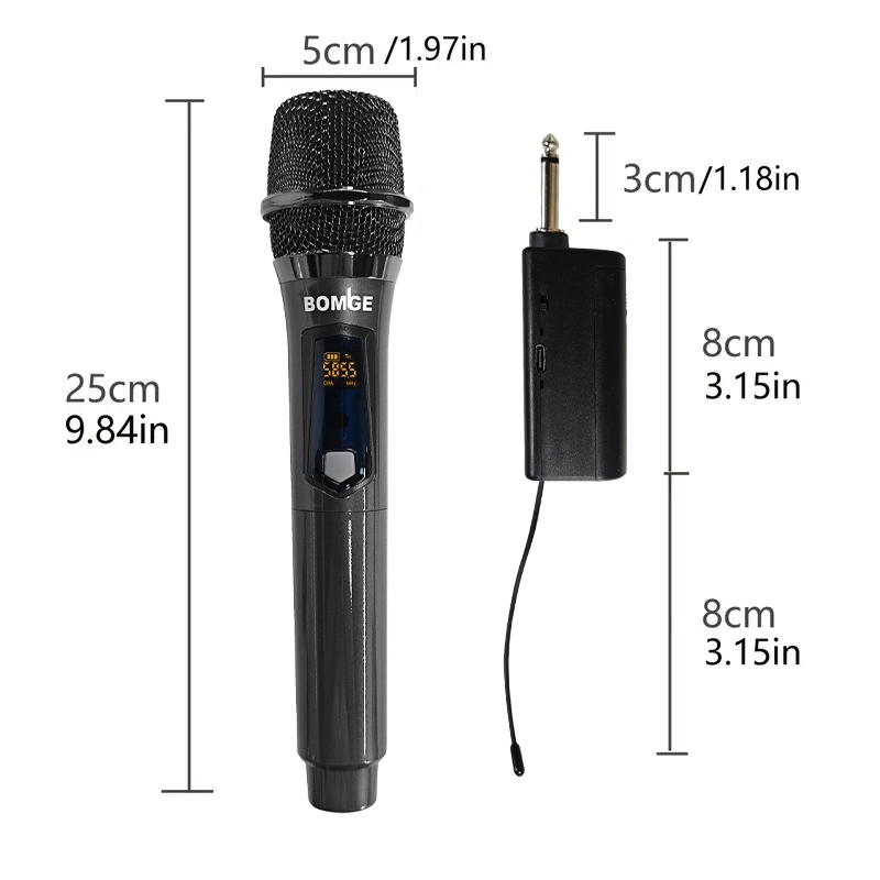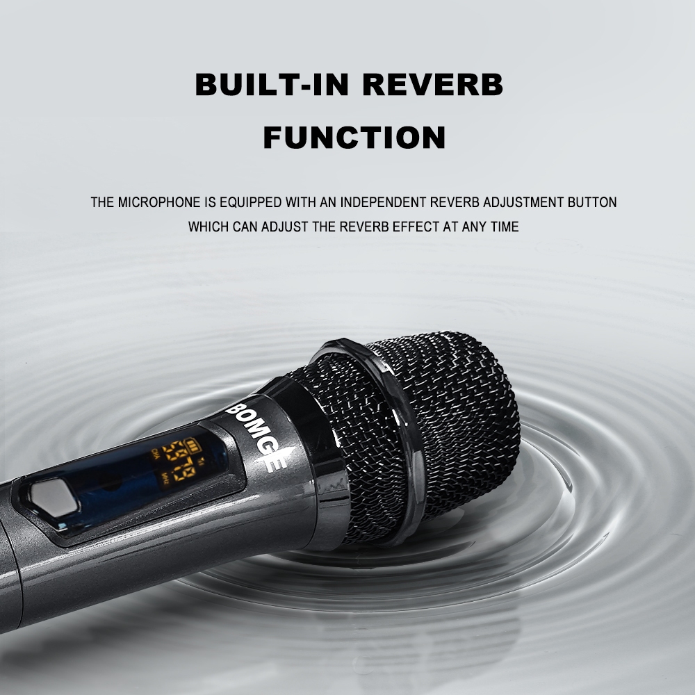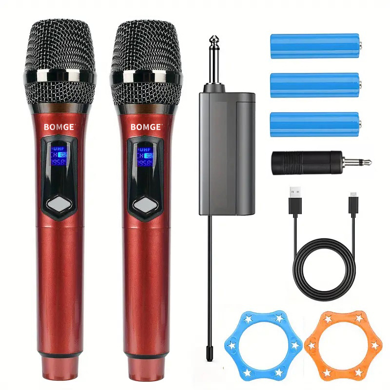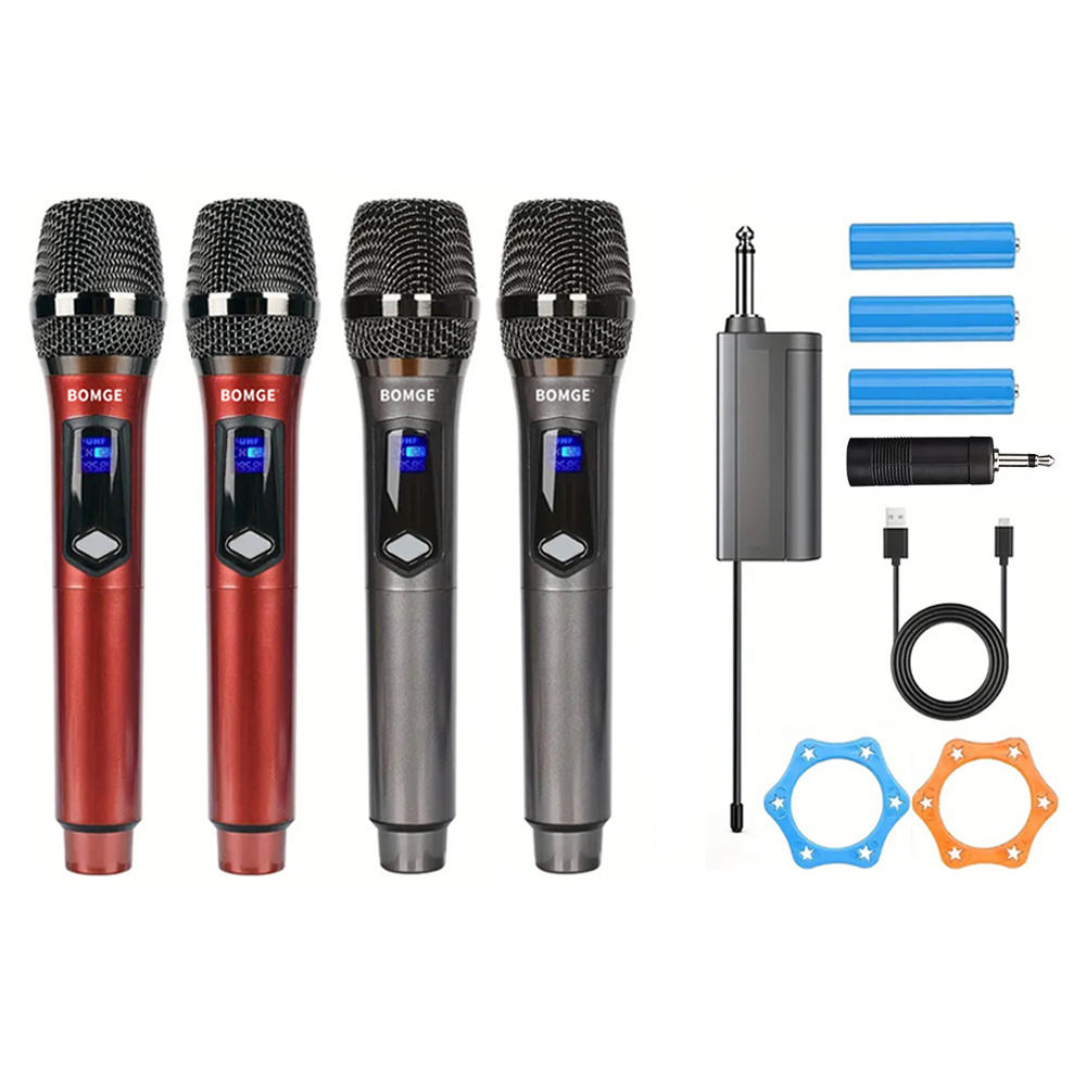BOMGE 261 Wireless Handheld Microphone,Metal Dual UHF Cordless Dynamic Mic System With 1800MAh Rechargeable Receiver For Karaoke,Party, Wedding