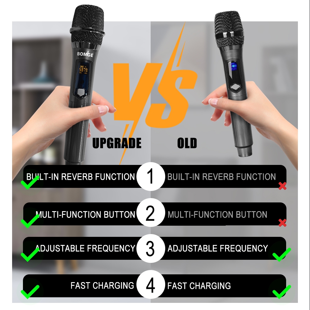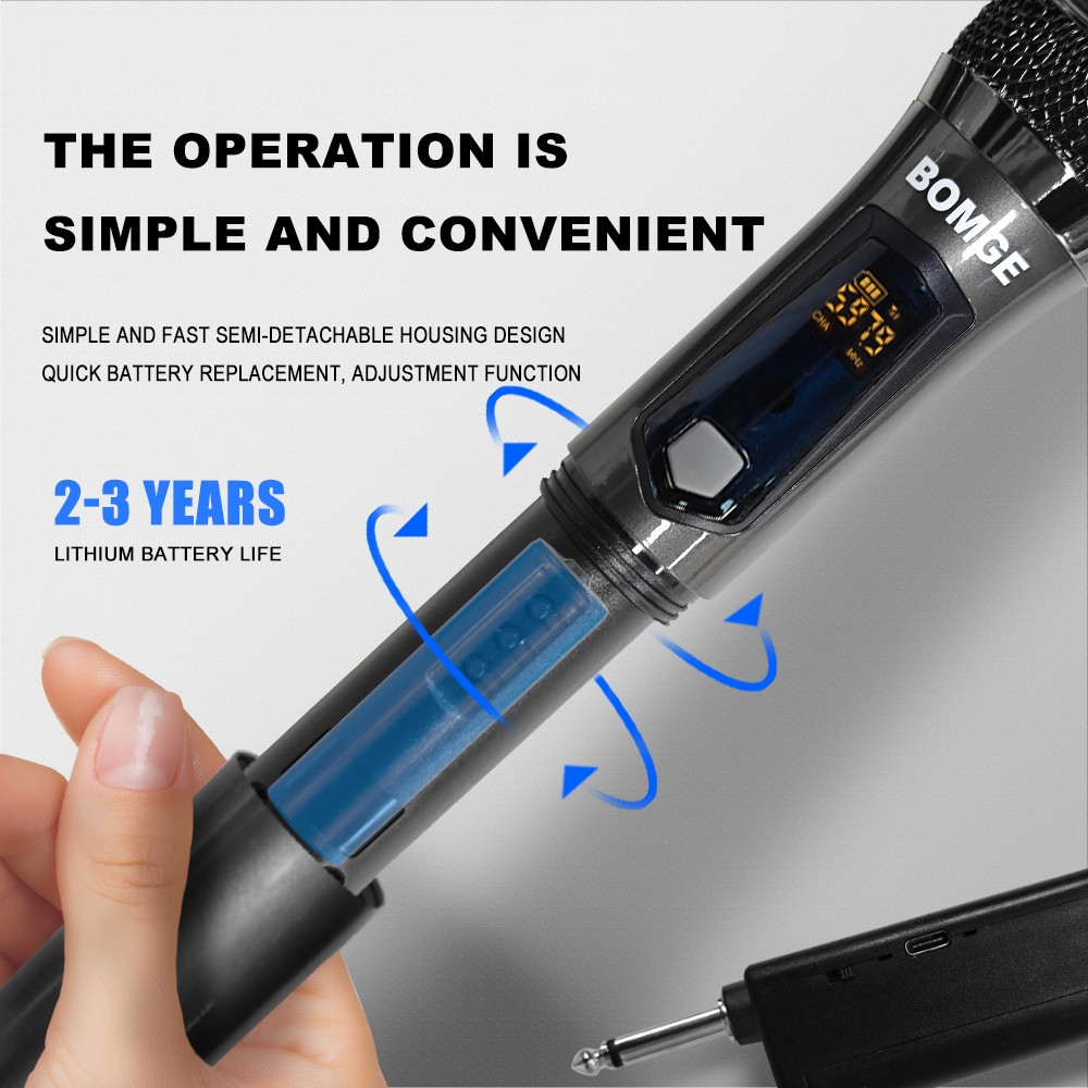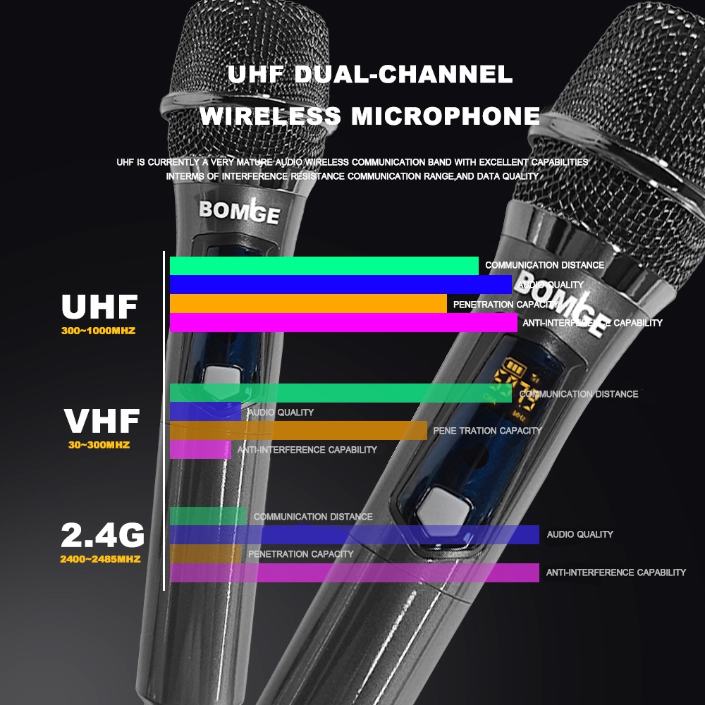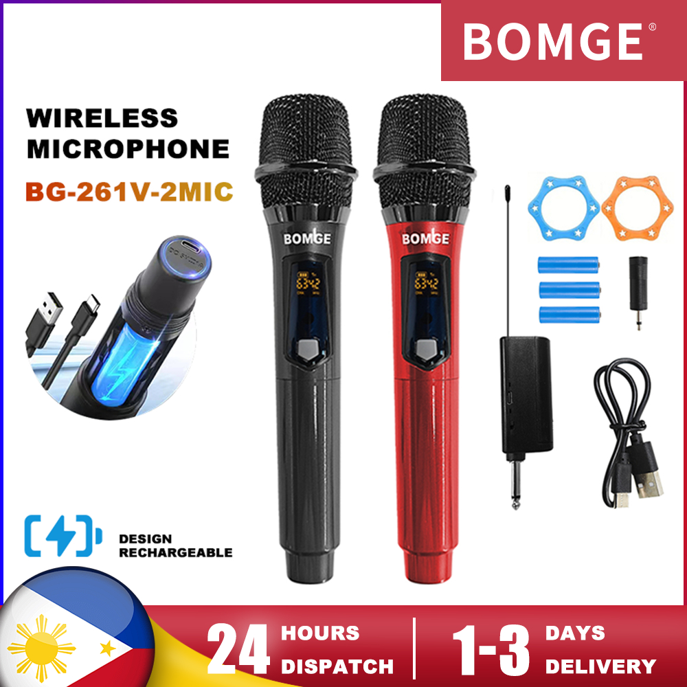 BOMGE 261 Wireless Handheld Microphone,Metal Dual UHF Cordless Dynamic Mic System With 1800MAh Rechargeable Receiver For Karaoke,Party, Wedding