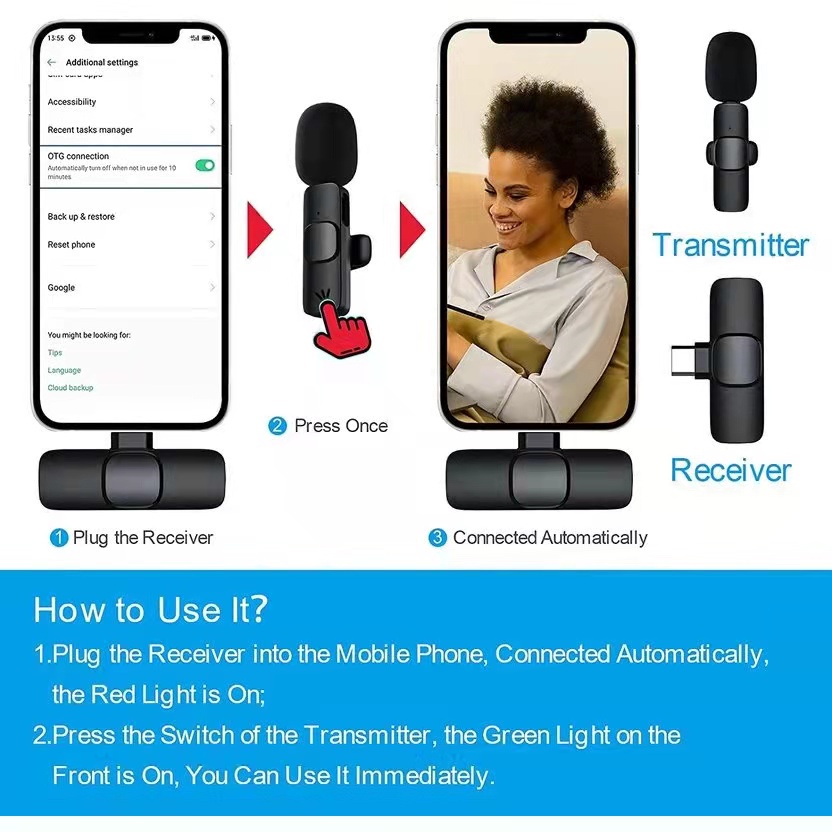 Wireless Lapel Microphone Lavalier Mic YouTubeFacebookTikTok Live Stream for Android Phone