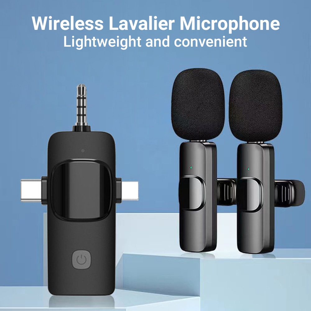 Wireless Lavalier Microphone K9 3-in-1 for iOS Android USB-C Noise Cancelling for Vlog Live