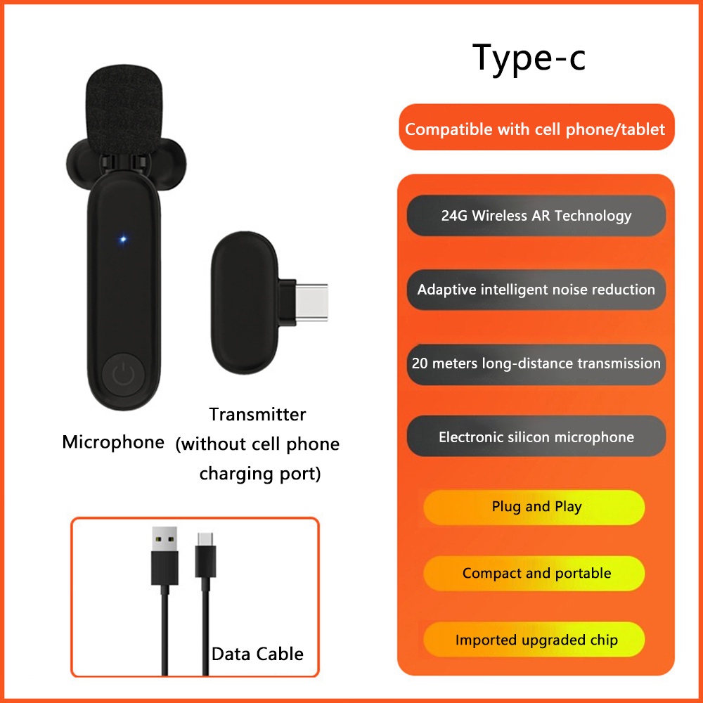 Wireless Lavalier Microphone for Type C Android Phones Mini Plug-Play Noise Reduction Clip Lapel Mic for Vlogging