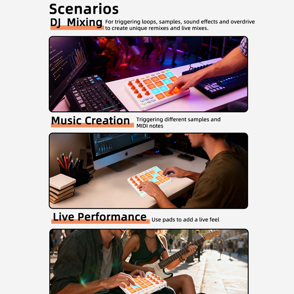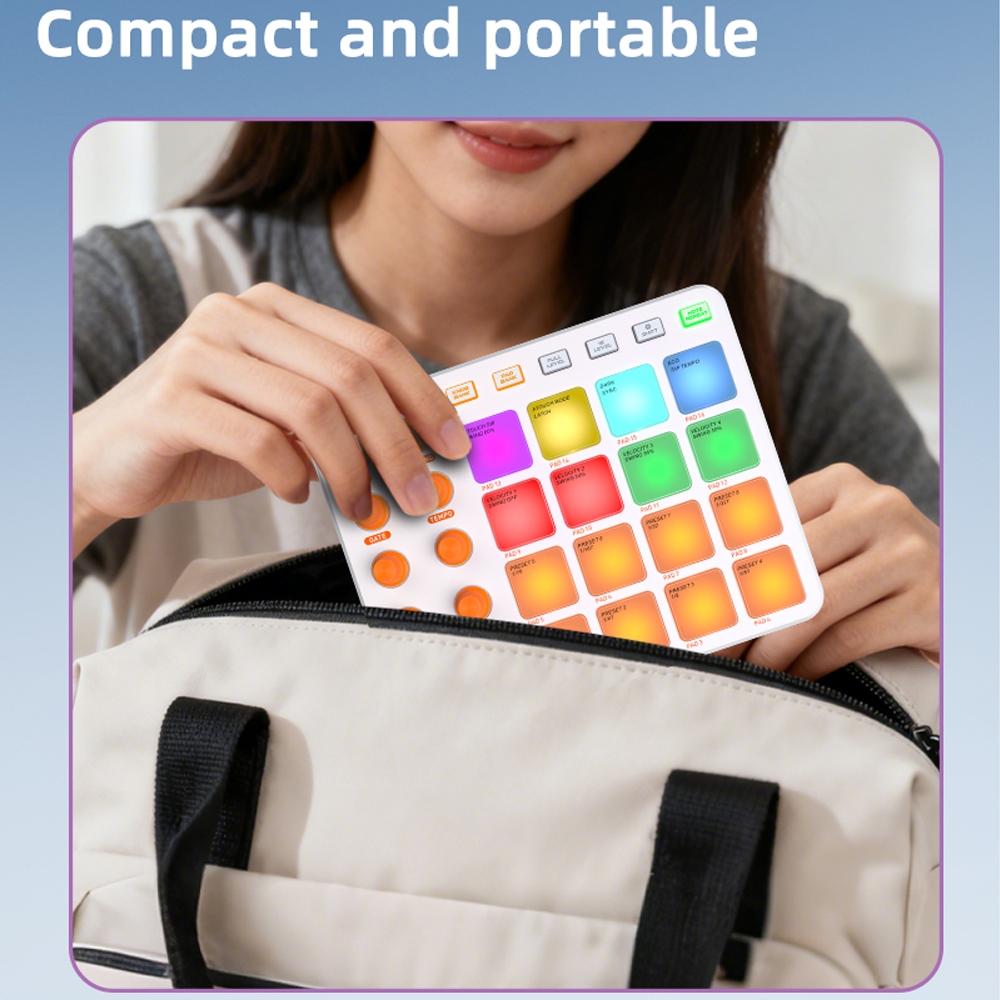Wireless MIDI Controller Pads Rechargeable Bluetooth Portable USB MIDI Controller with 16 Drum Pads 8 Assignable Knobs Plug & Play for iPad/iPhone/Mac/PC