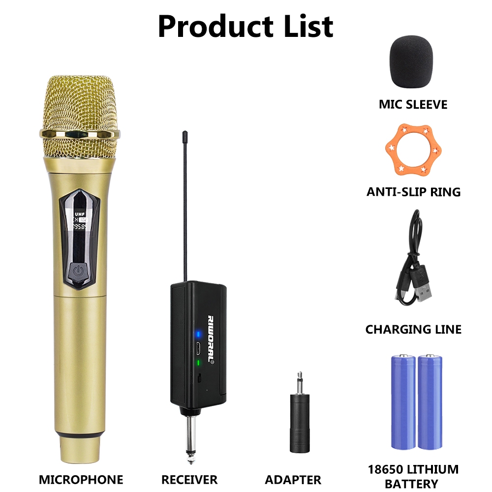 Wireless Microphone 18650-1200mah Rechargeable Microphone Working Range 50m / 164ft Dual Microphone
