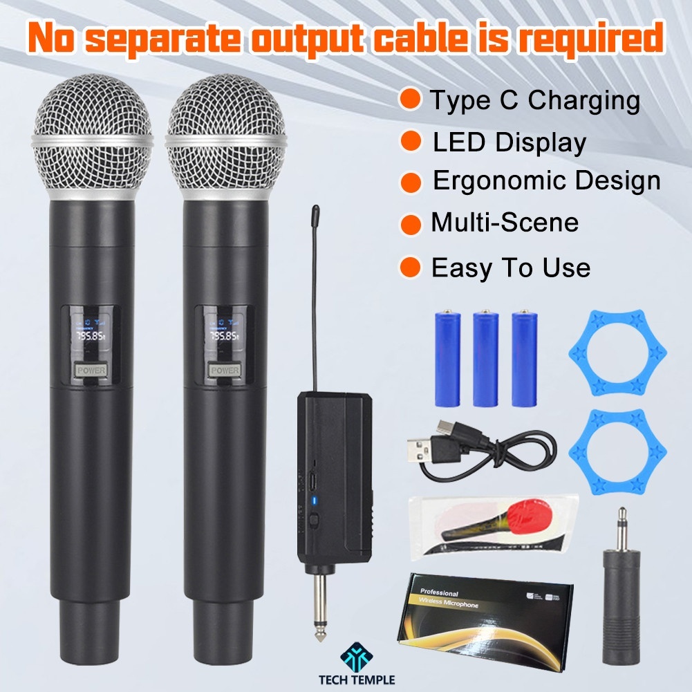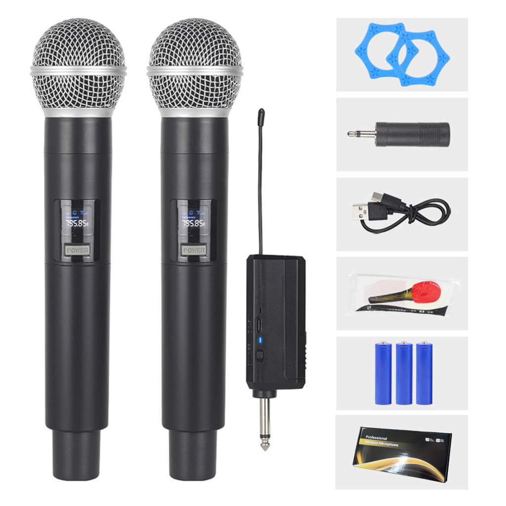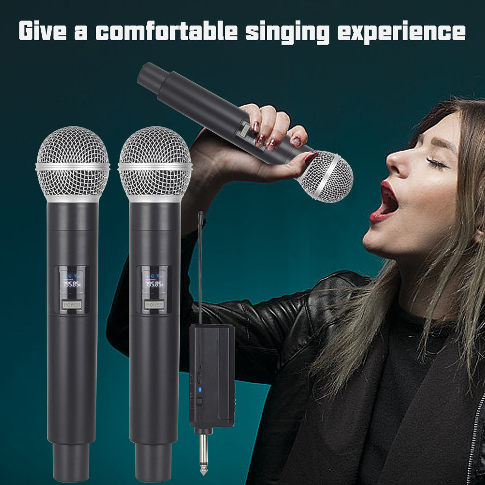 Wireless Microphone Receiver Universal Microphone Karaoke with LED Display 3.7V Charging Free Rechargeable Battery Plug And Play
