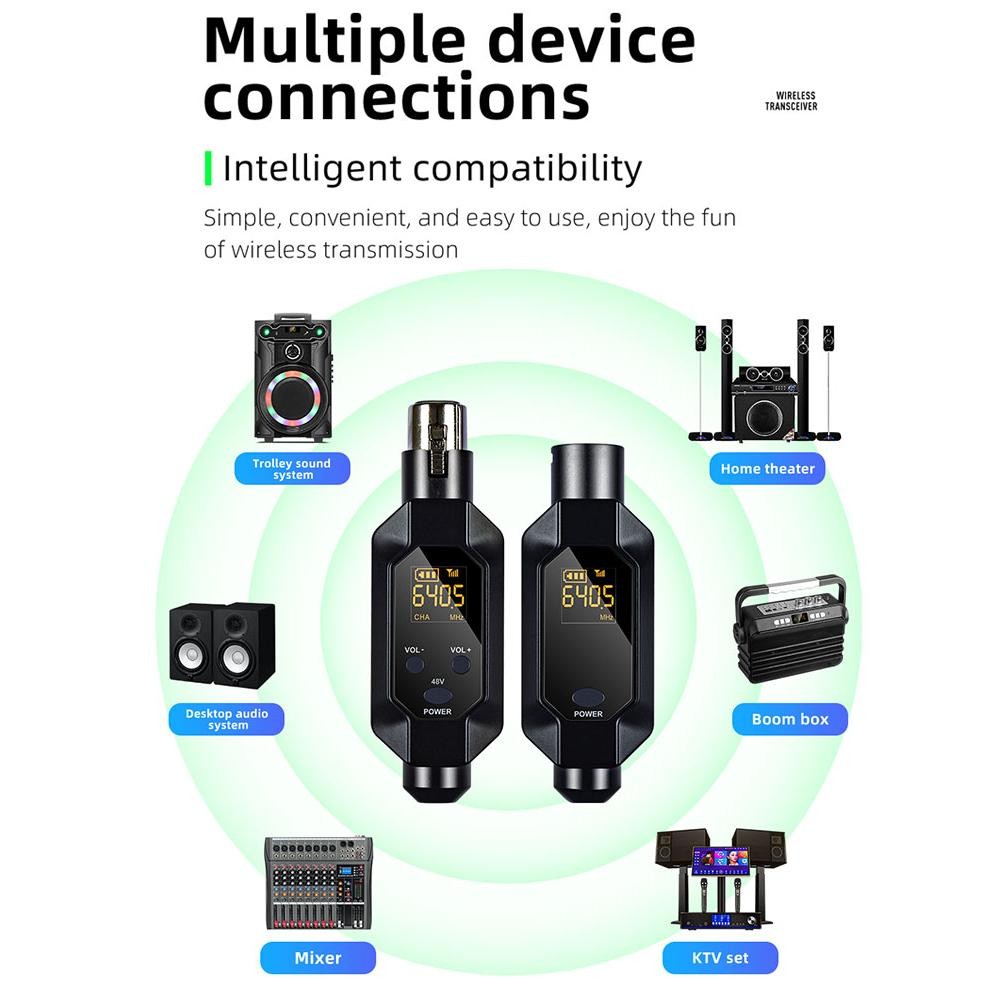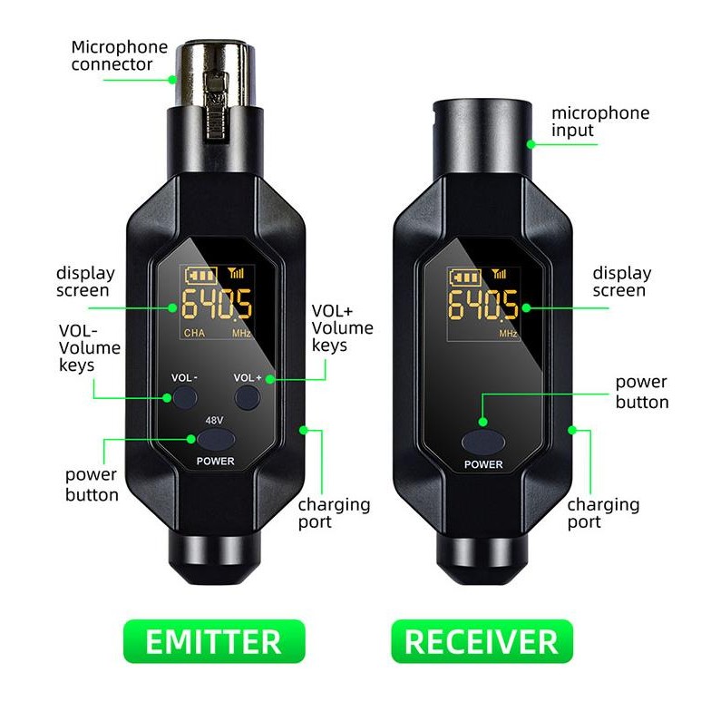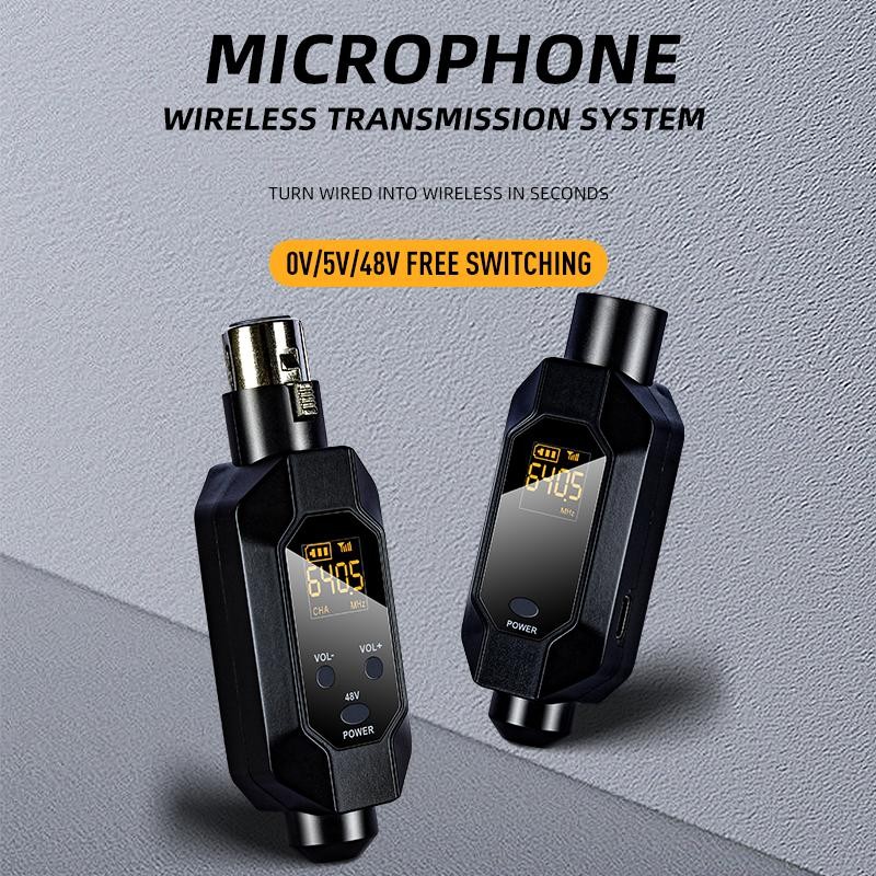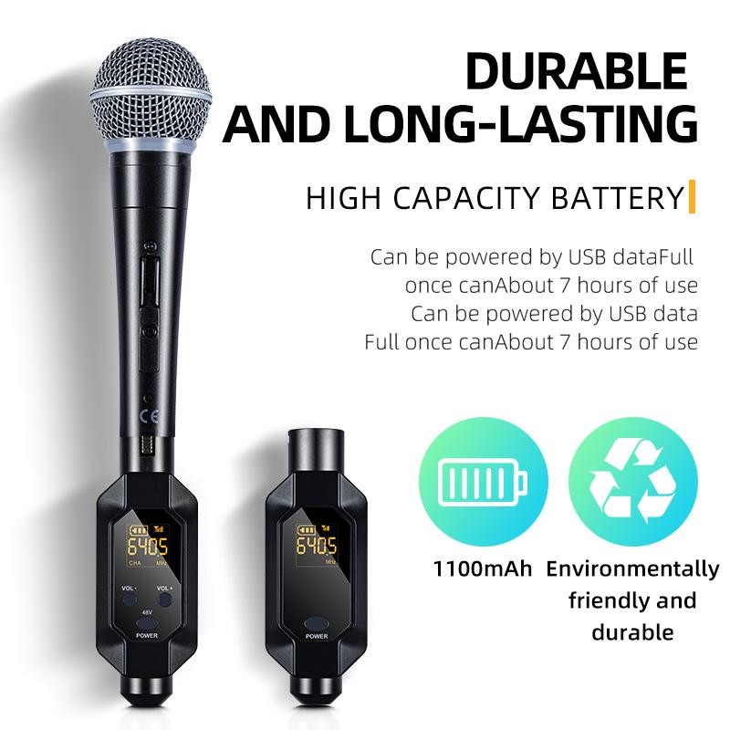 Wireless Microphone Transmitter Receiver 2.4Ghz XLR Microphone Wireless System Rechargeable Wireless Mic Adapter for Audio Mixer/ Dynamic Mic/48V Phantom Power for Condenser Mic