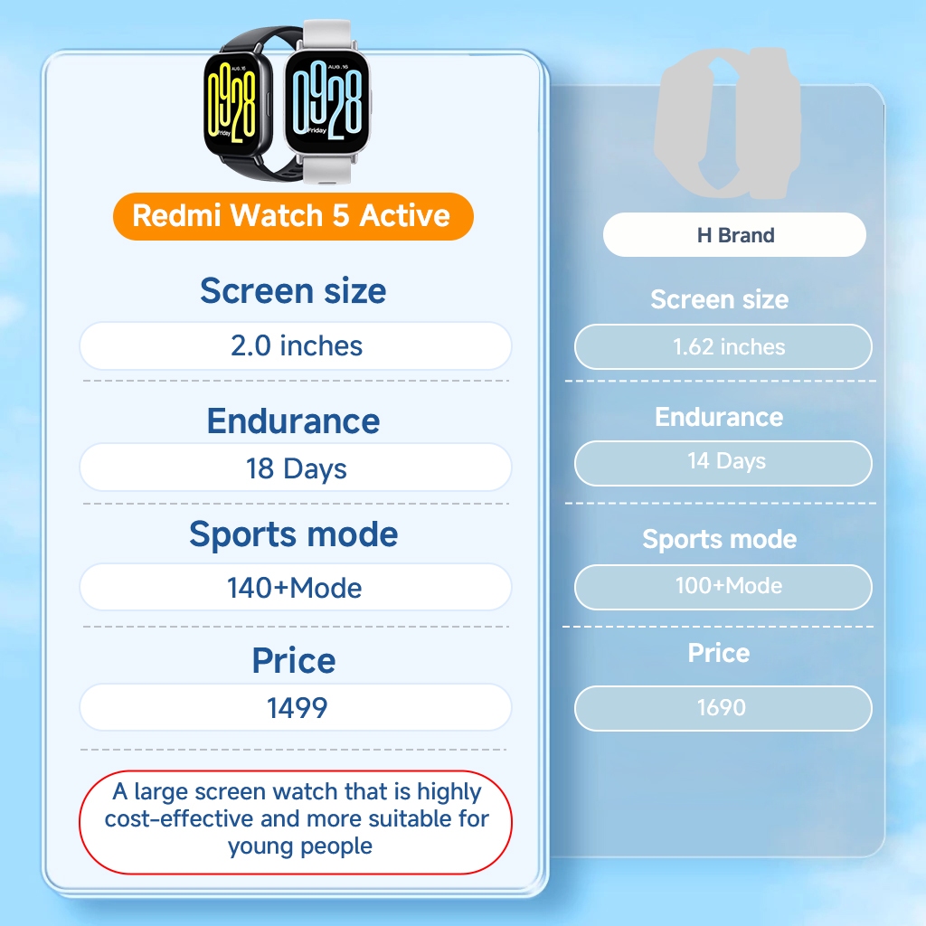 [Free Strap] Xiaomi Redmi Watch 5 Active 2.0'' LCD Display Bluetooth Phone Call 5ATM Alexa Built In