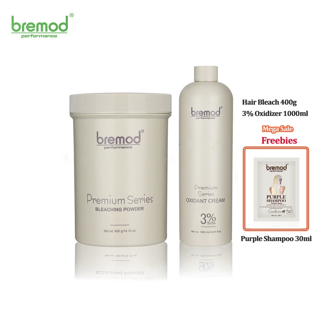 Bremod Premium Hair Bleaching Powder 400G + Oxidizer Cream 1000ml 6% or 9% or 12% Brightener Bundle