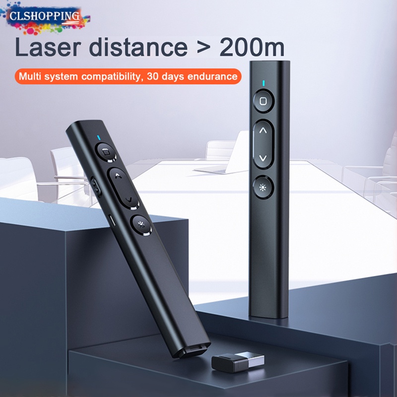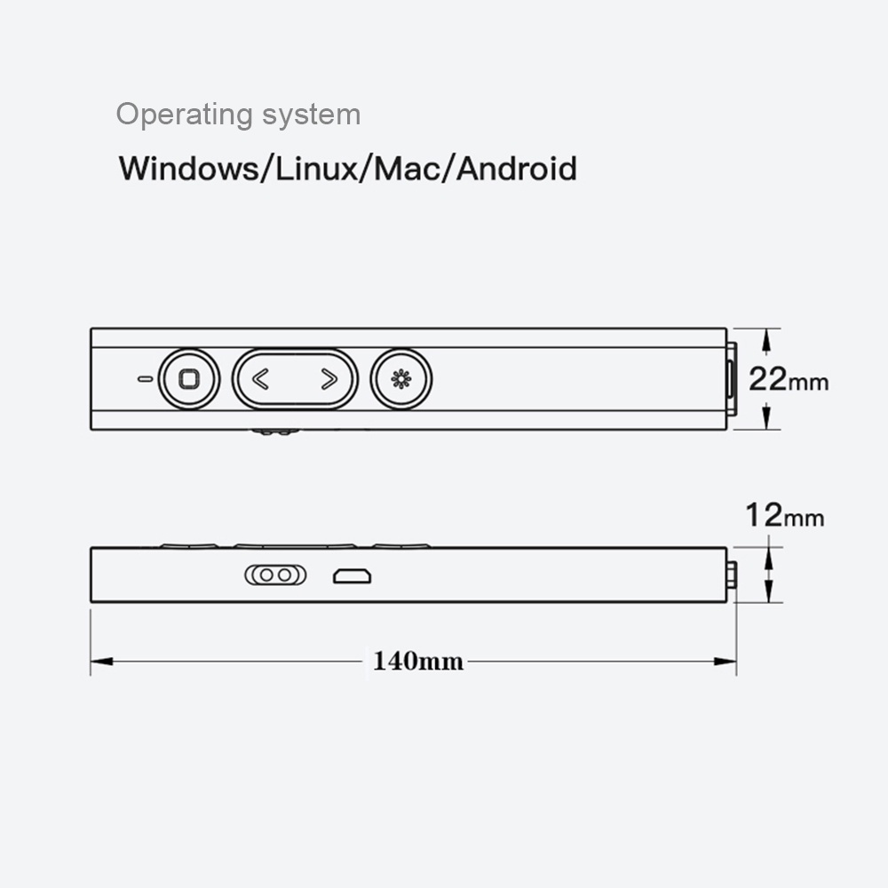 Wireless PPT Remote Control USB Rechargeable Pointer Presenter Page Turning Pen with Red Laser for Powerpoint Computer/Laptop
