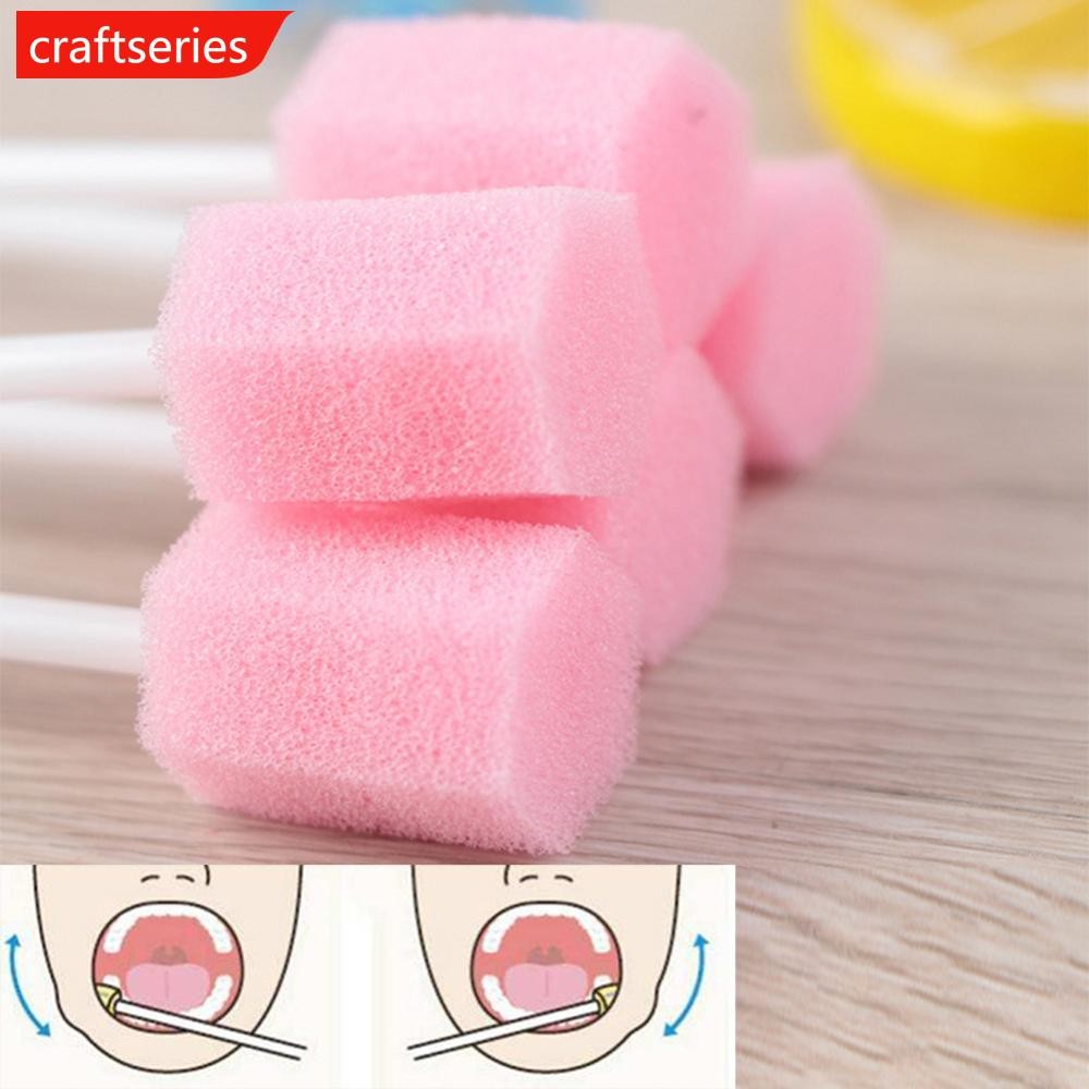 CRAFTSERIES 100Pcs Disposable Oral Care Sponge Swab Tooth Cleaning Mouth Swabs With Stick Sponge Head Cleaning Cleaner Swab Q8S5