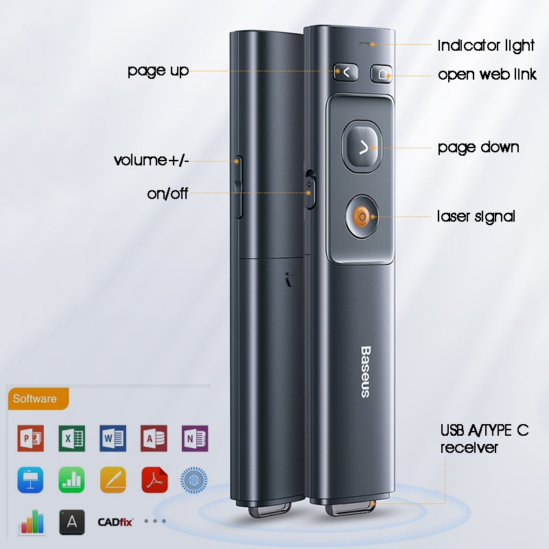 Wireless PowerPoint Presentation Clicker Baseus PPT Remote Control, 2 in 1 Type-C and USB RF 2.4GHz PPT Presenter